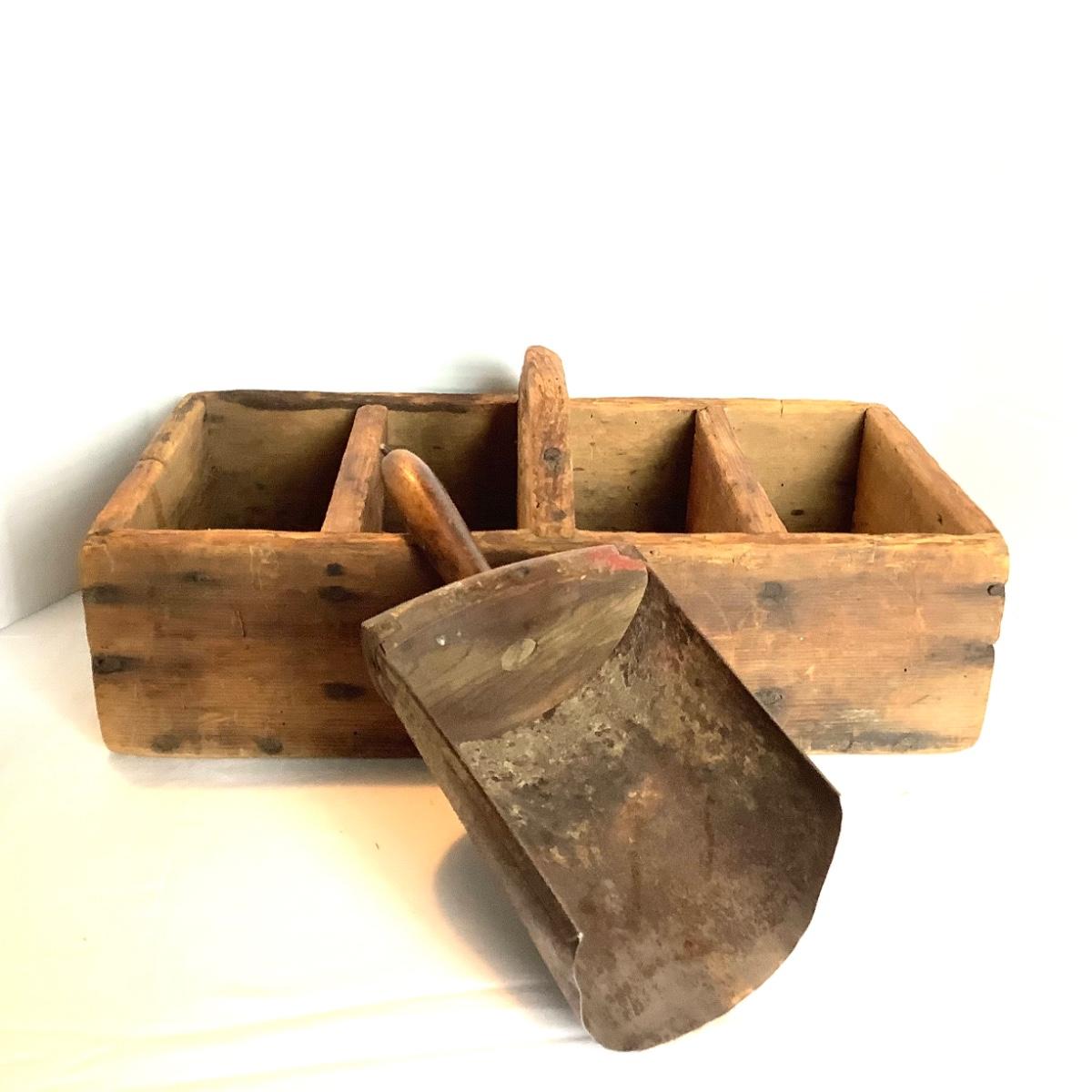 370 Antique Primitive Divided Box with Scoop