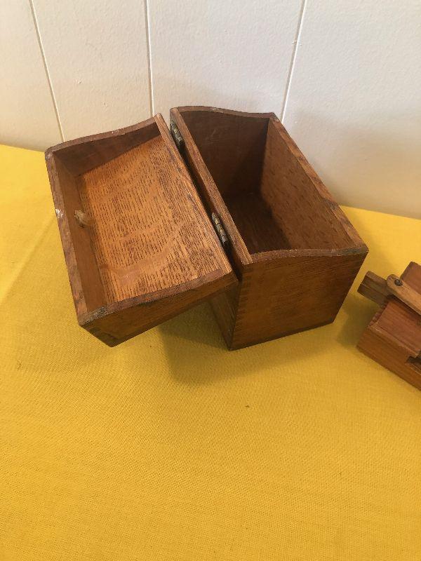 #370 AWESOM OAK HINGED BOX AND WOOD PUZZEL