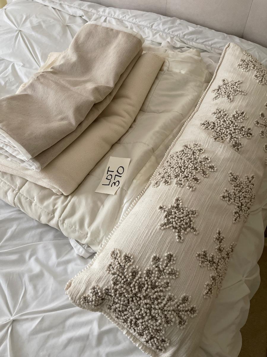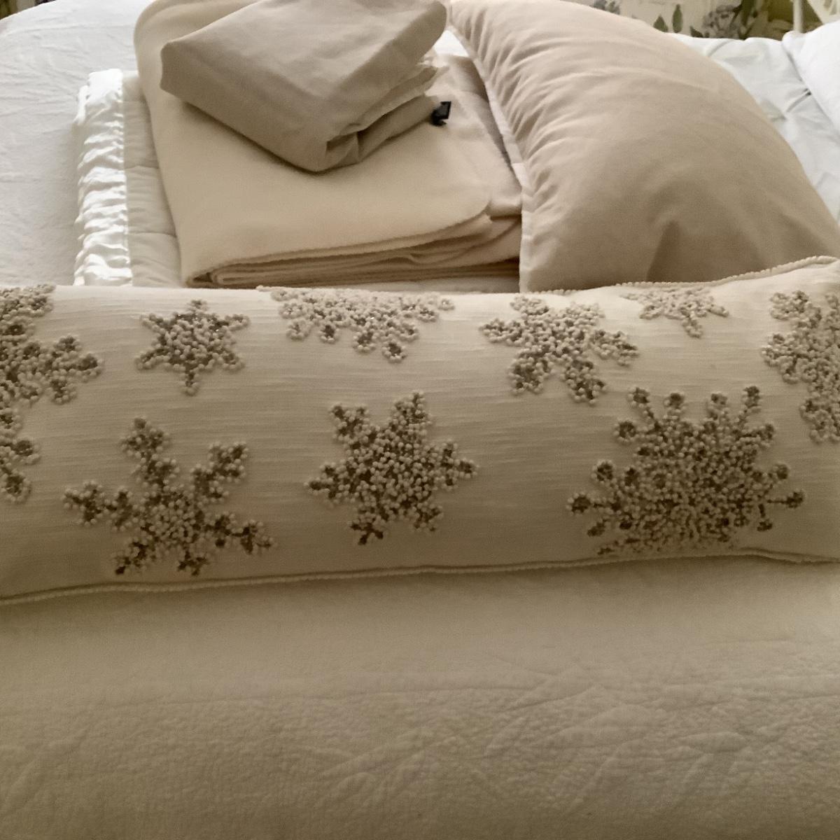 Long decorative pillow with beaded snowflake design 33" x 12" with 2 x King sham burlap and white