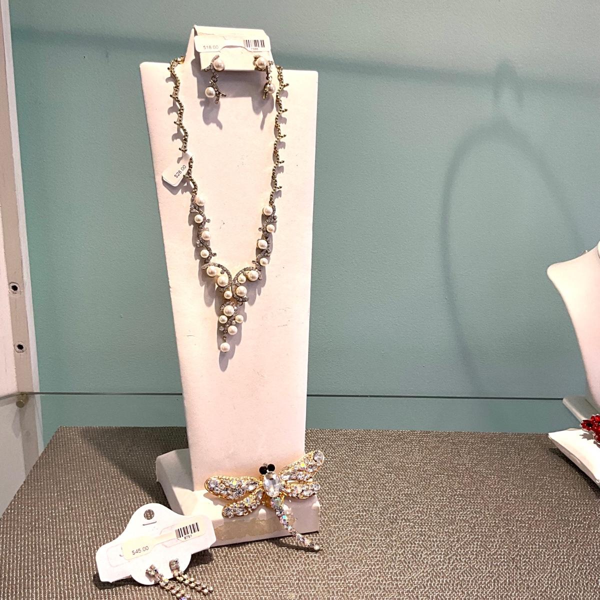 370 Dragonfly Rhinestone Pin, Two Earrings, Rhinestone Necklace