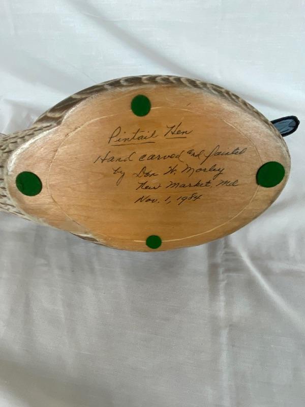 Beautiful Hand carved Pintail Hen Decoy by Don W. Morley Mew Market, Md November 1, 1984