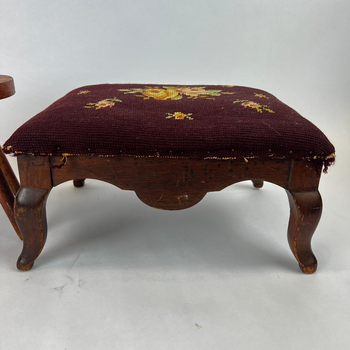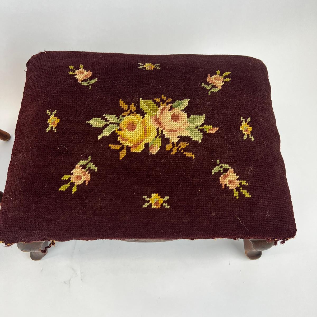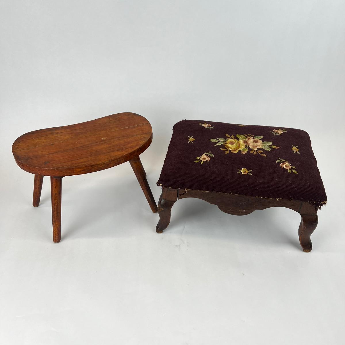372 Needlepoint Stool Ottoman And Antique Small Step Stool