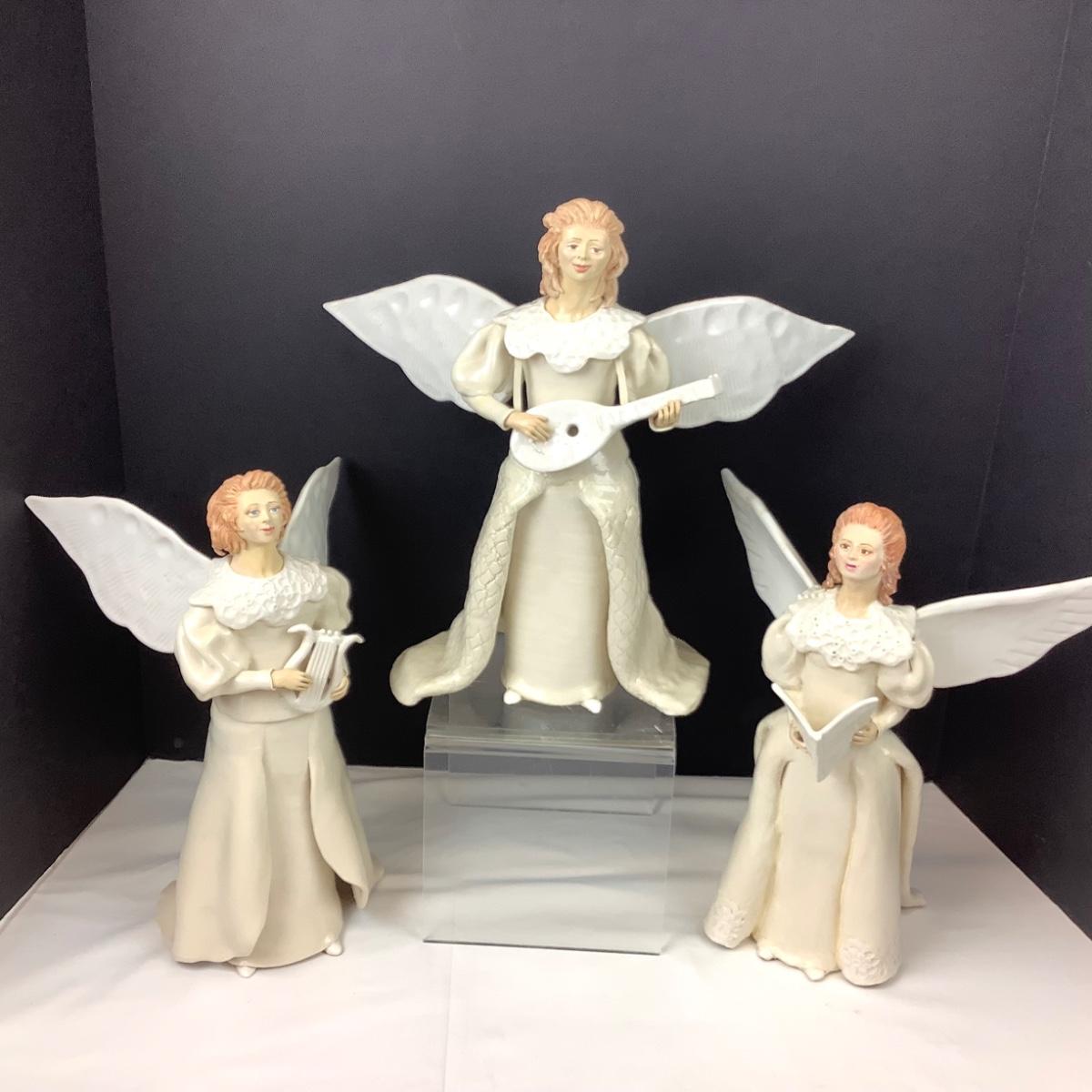 375 Large 12" Hand Sculptured Clay Musical Angels by Virginia Perram