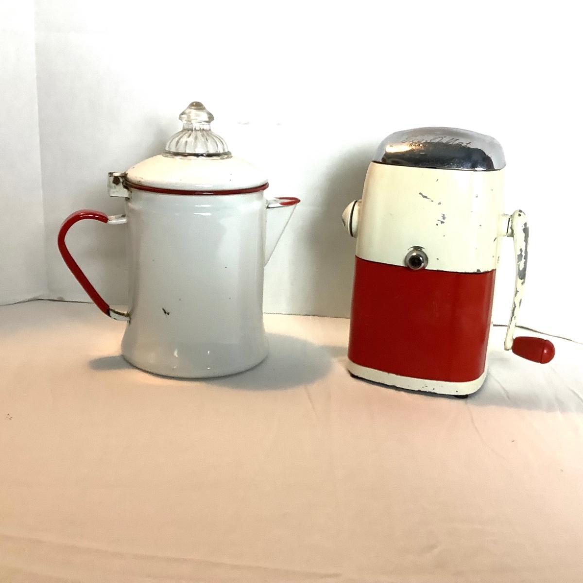 375 Vintage Kitchen Ice-O-Mat, and Enamel Coffee Pot