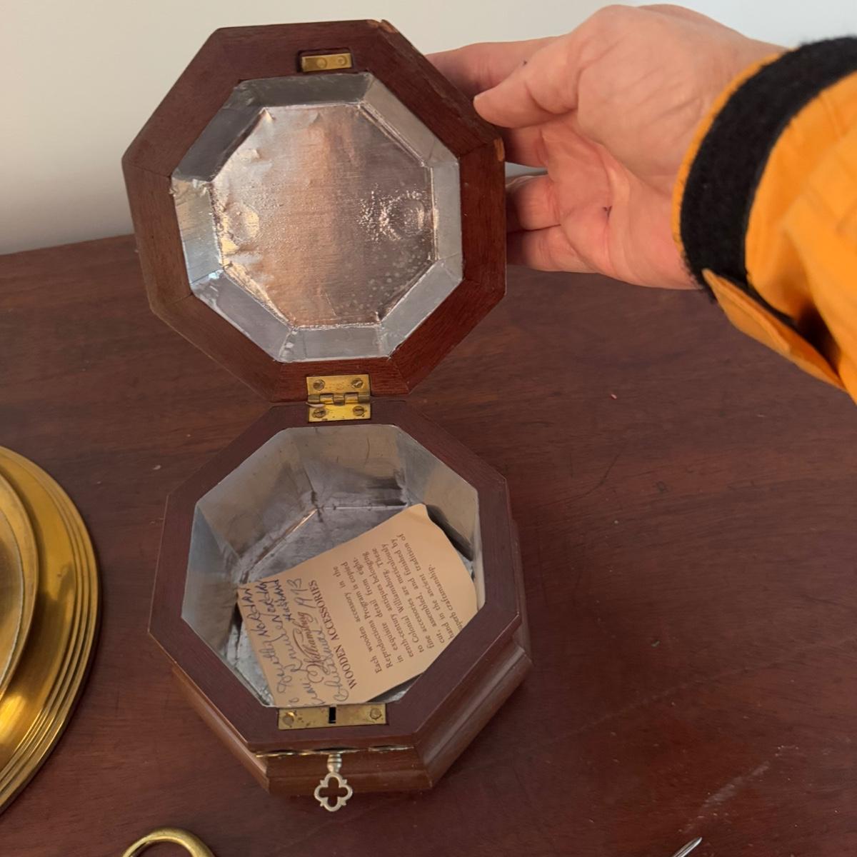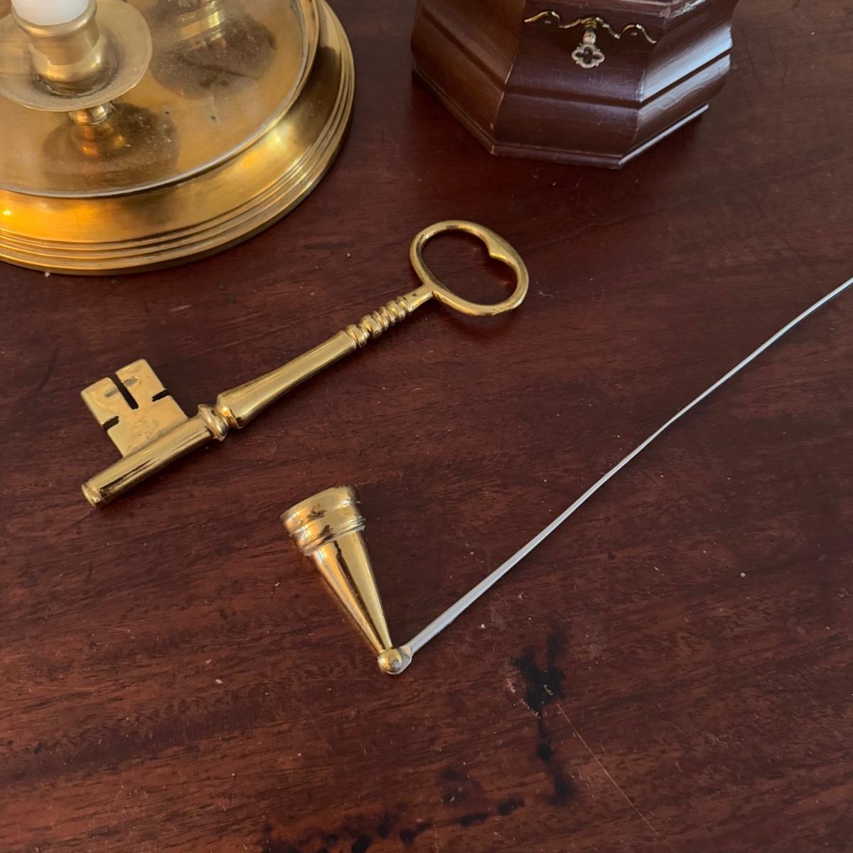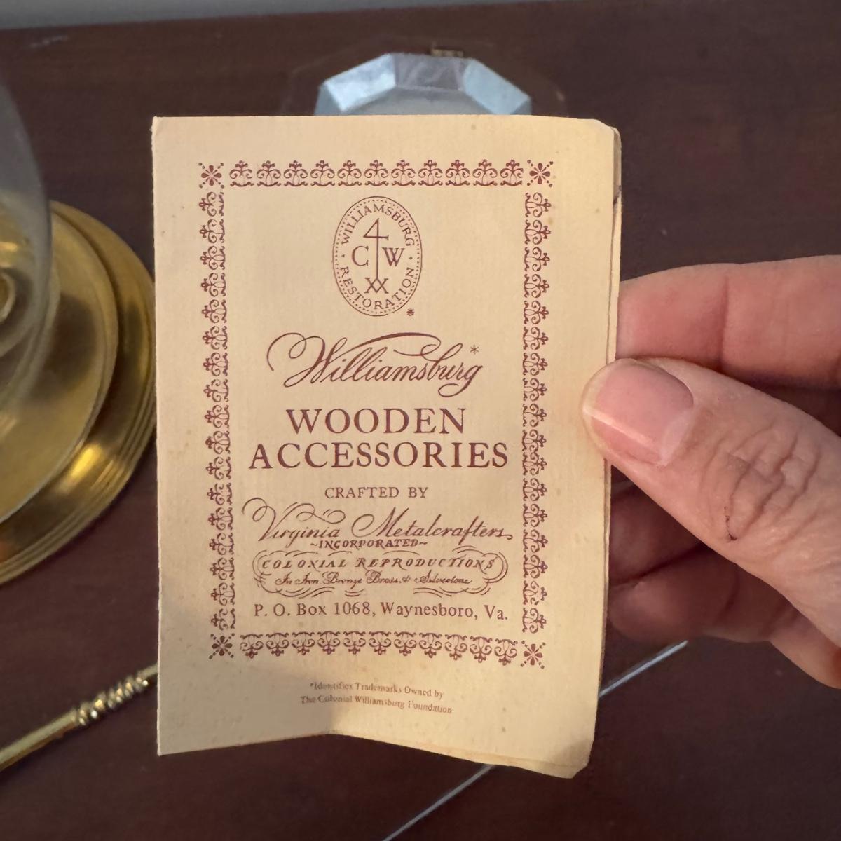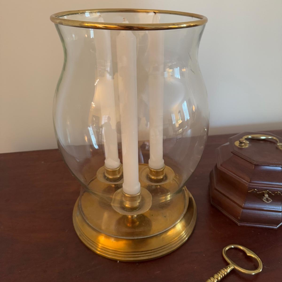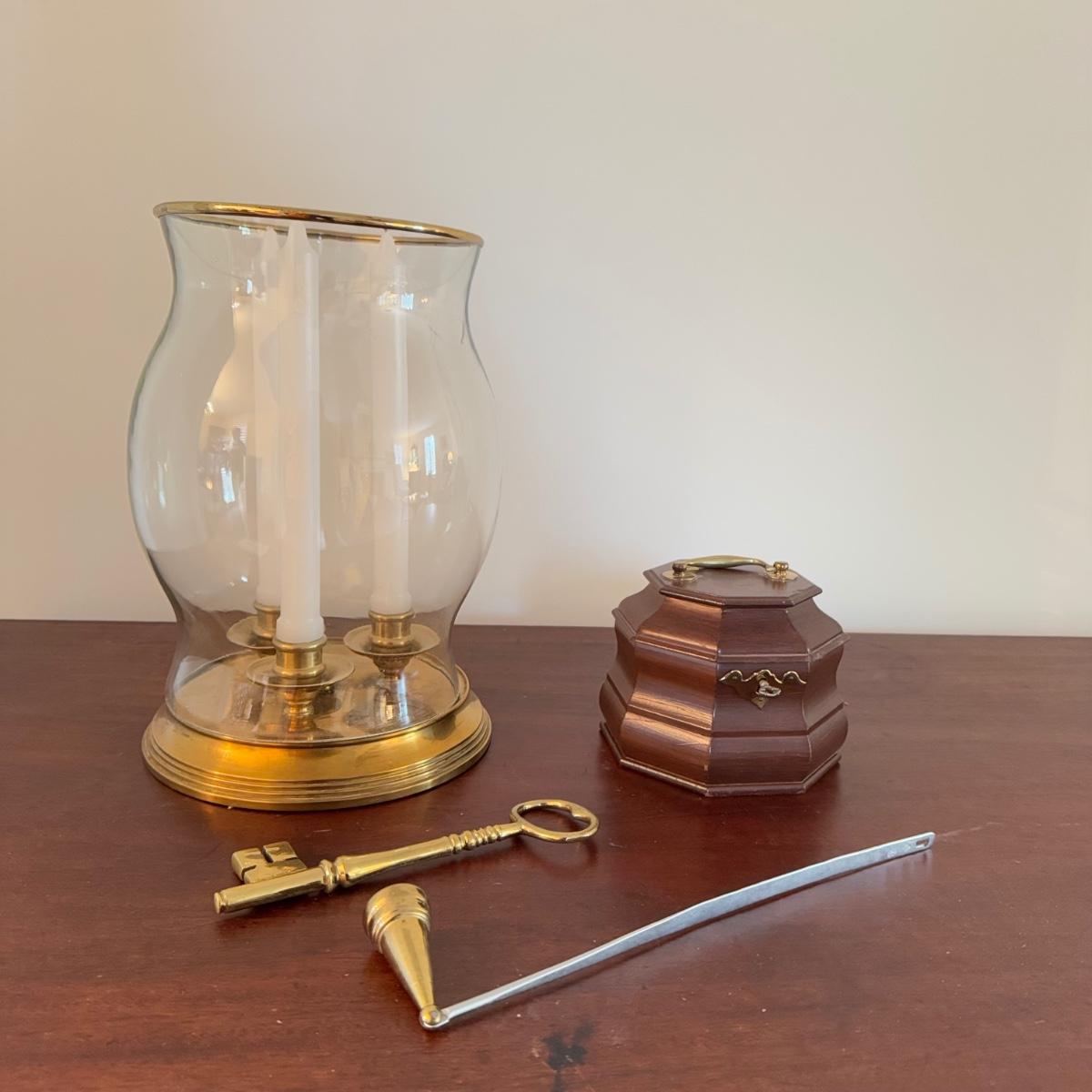 375 Williamsburg Wooden Box and 3 Candlestick Hurricane Glove on Brass