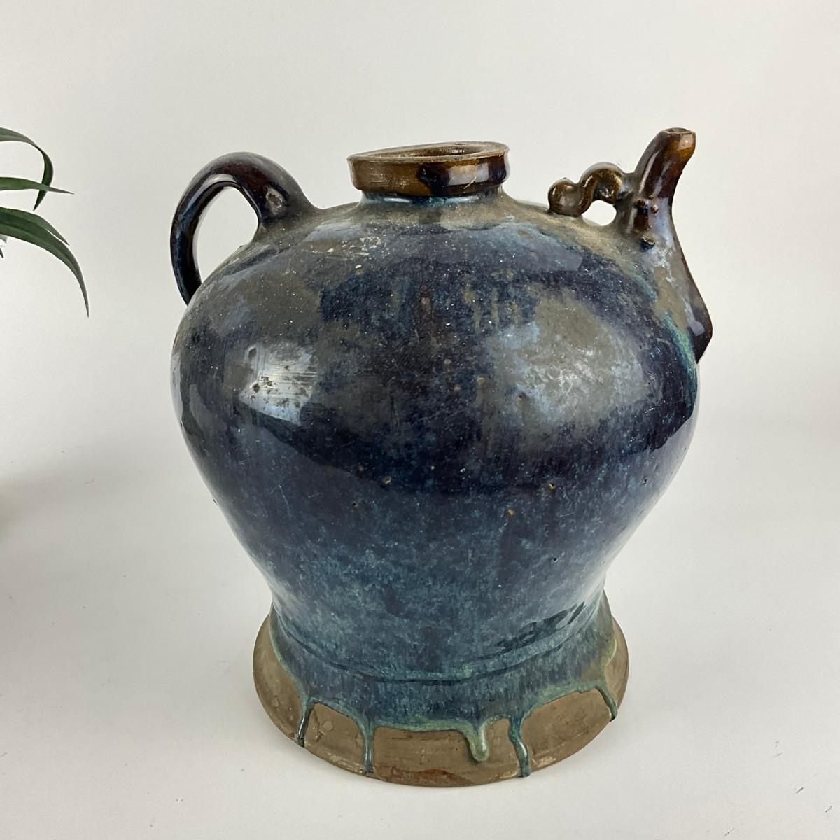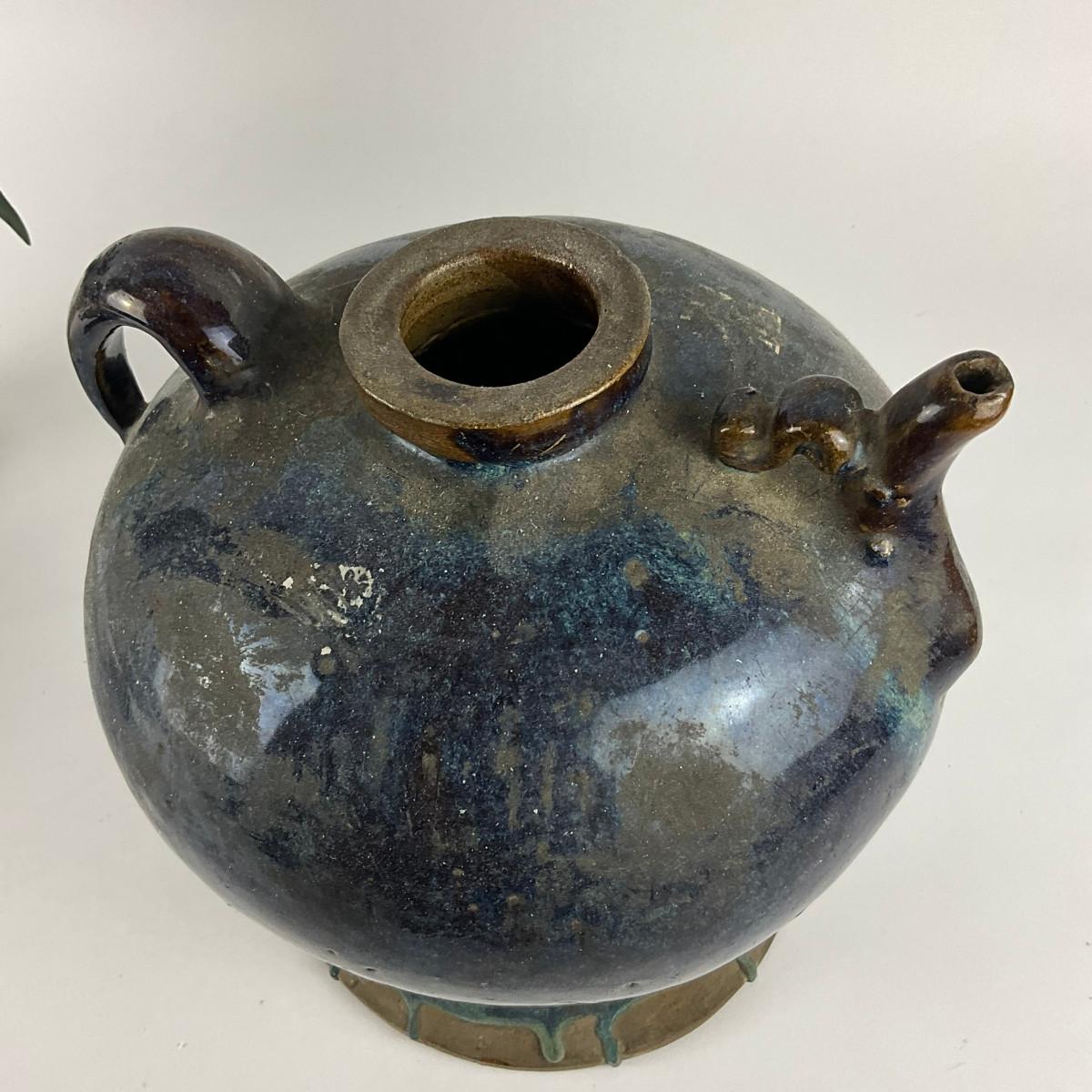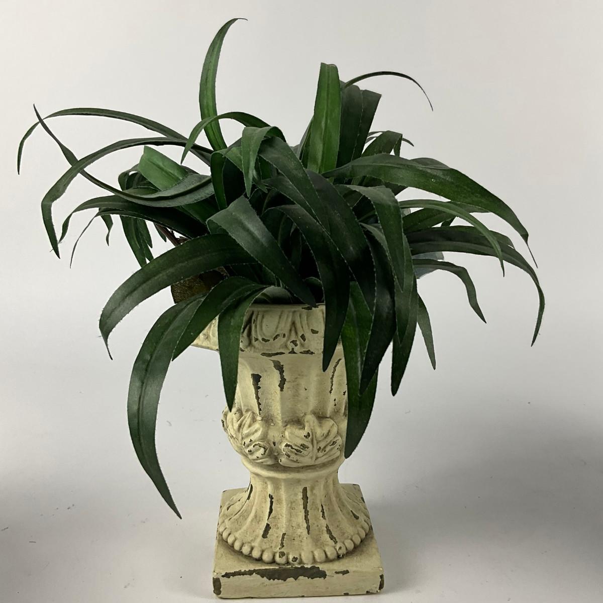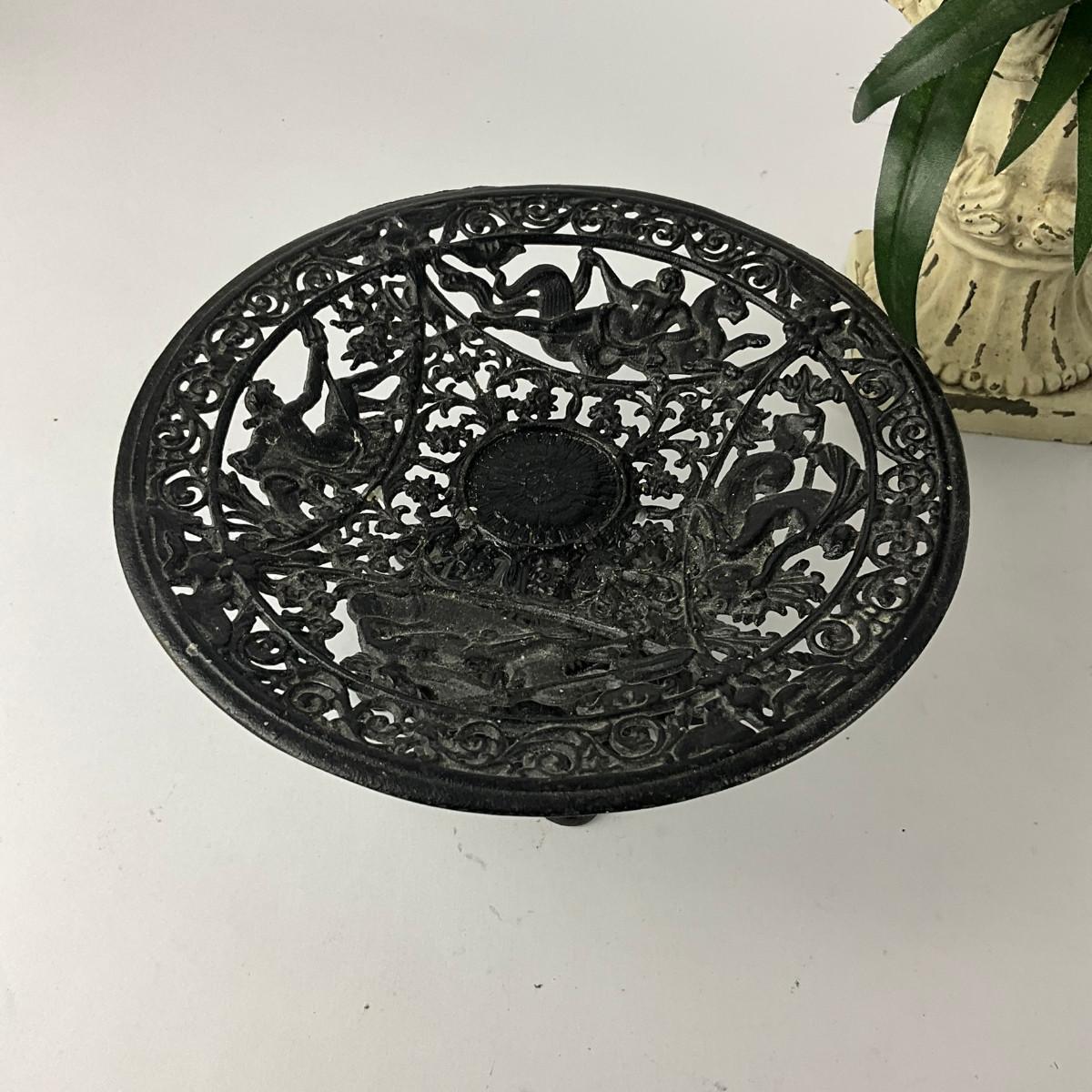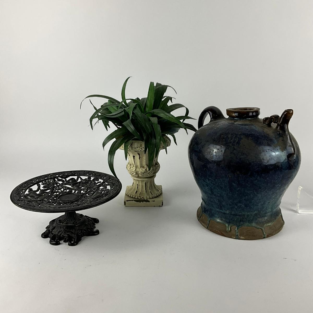 376 Decorative Ceramic Jug, Cast Iron Pedestal Plate & Faux Plant In Vintage Planter