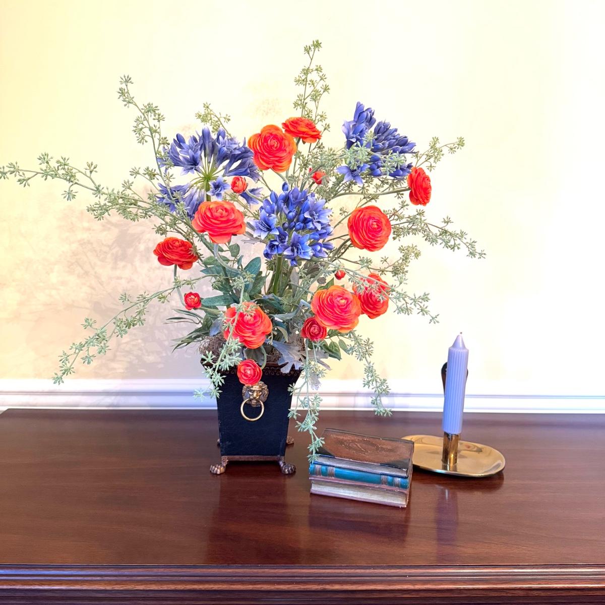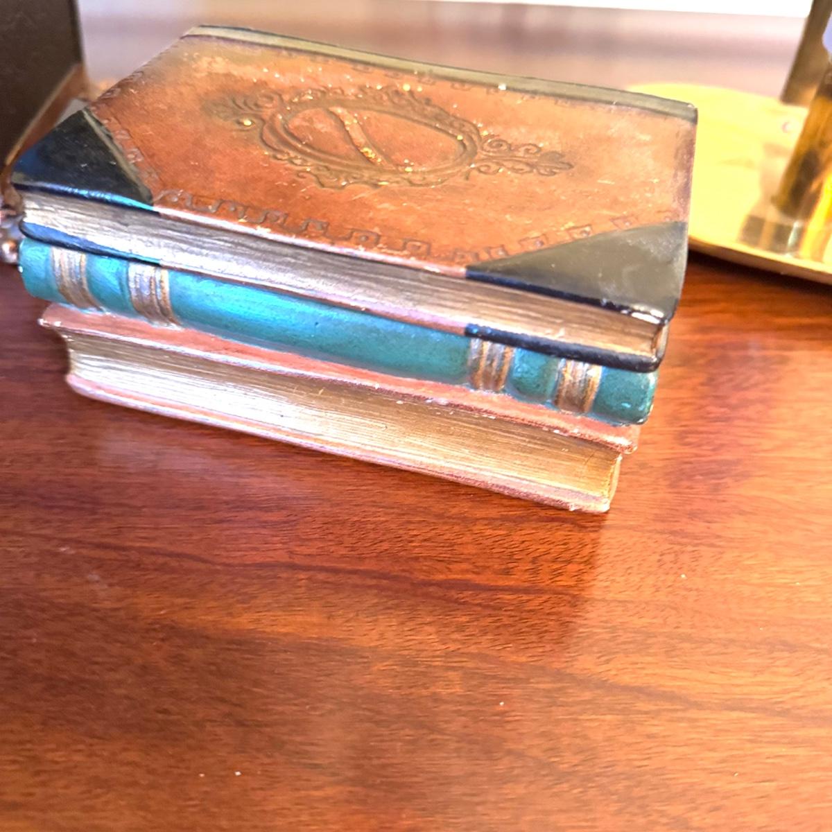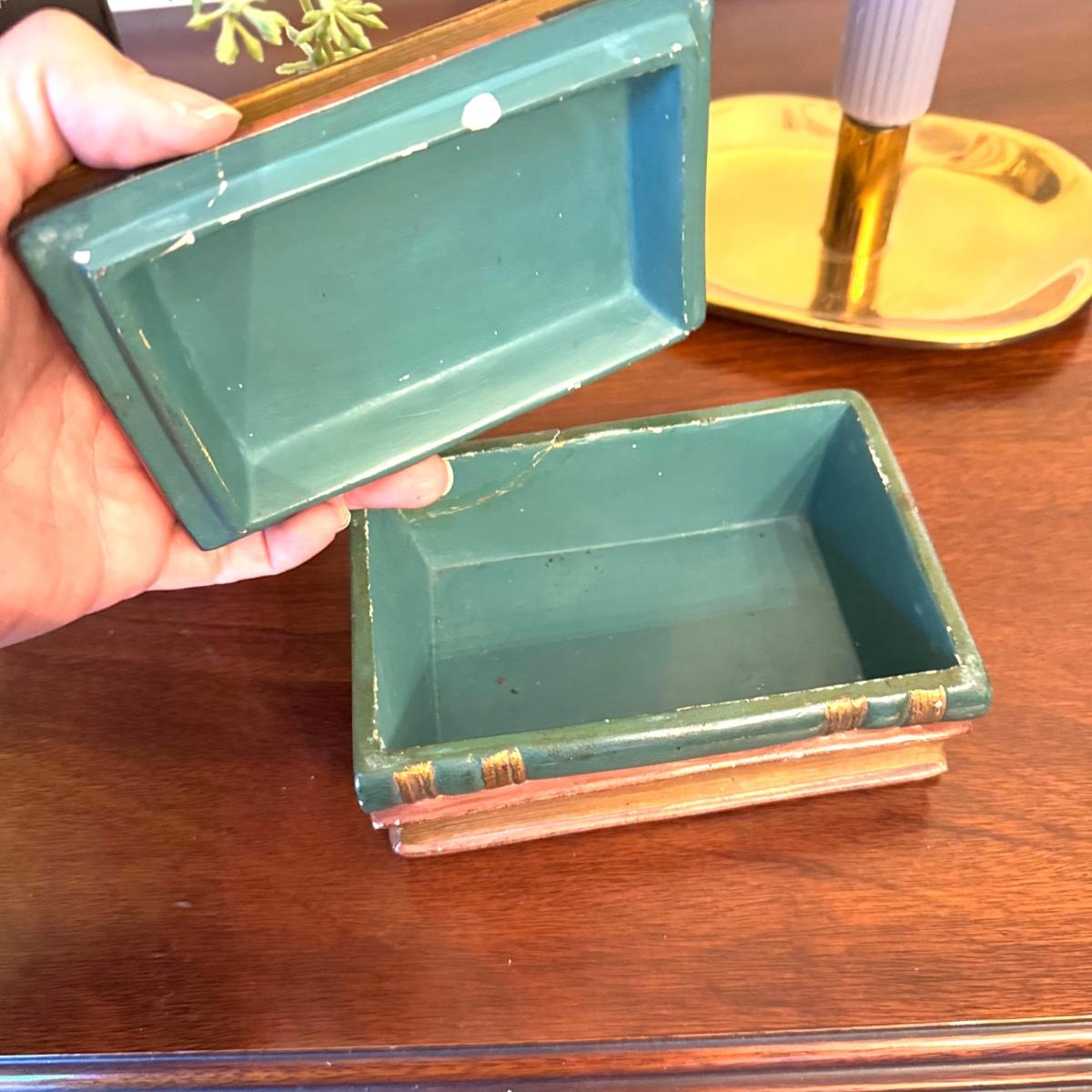 379 Artificial Floral Arrangement, Wooden Book Box, Brass Candlestick