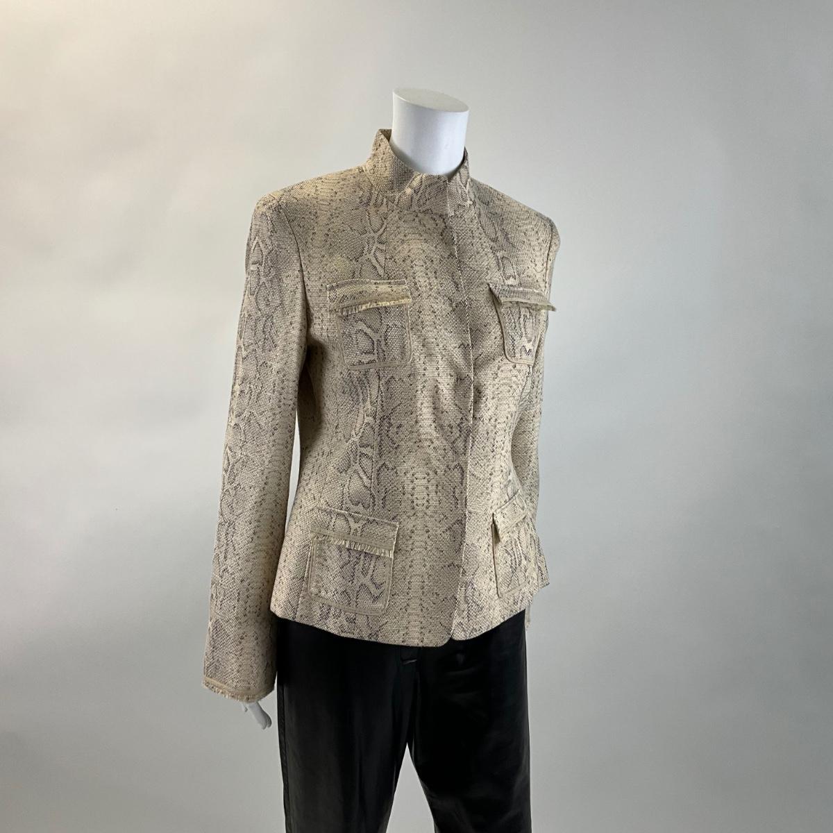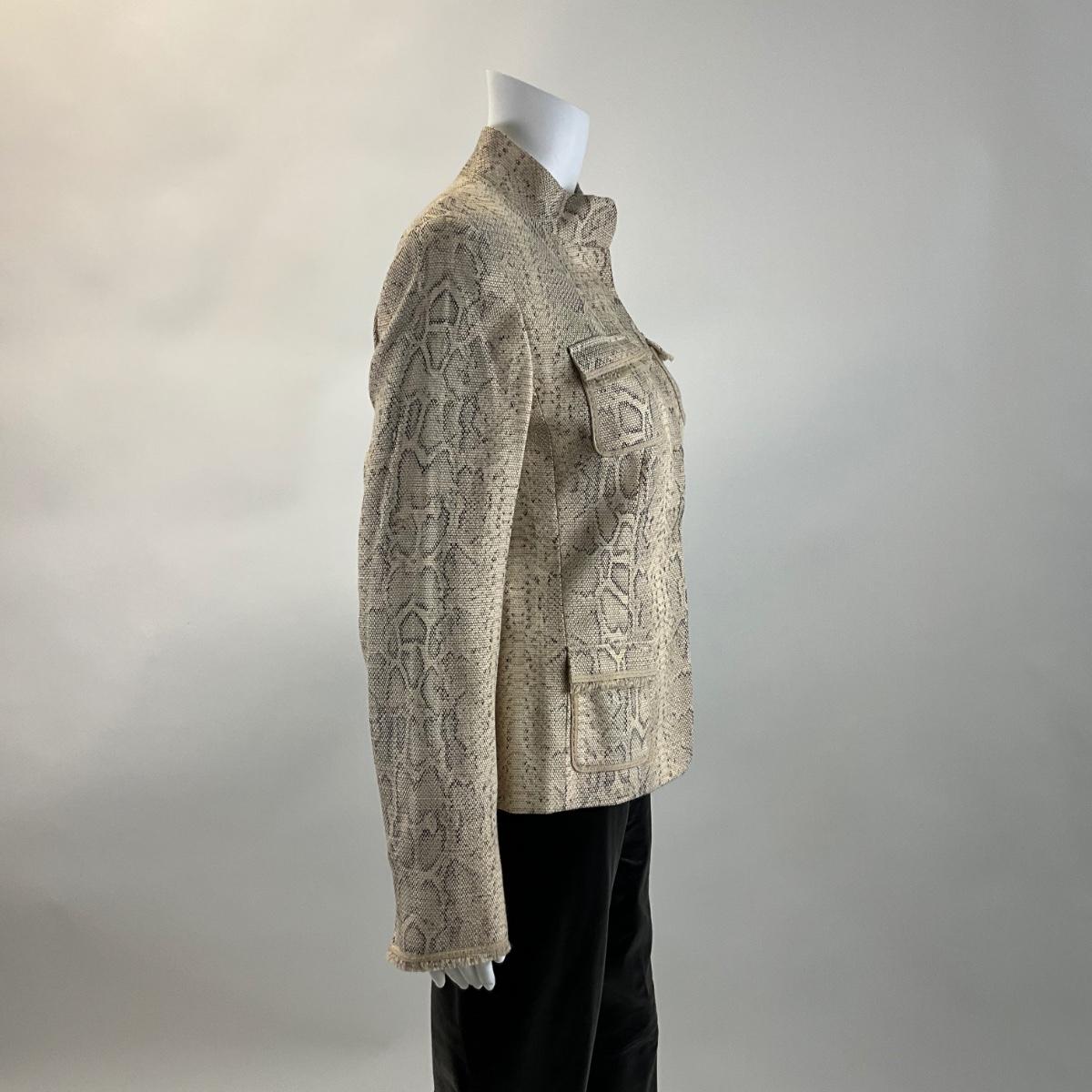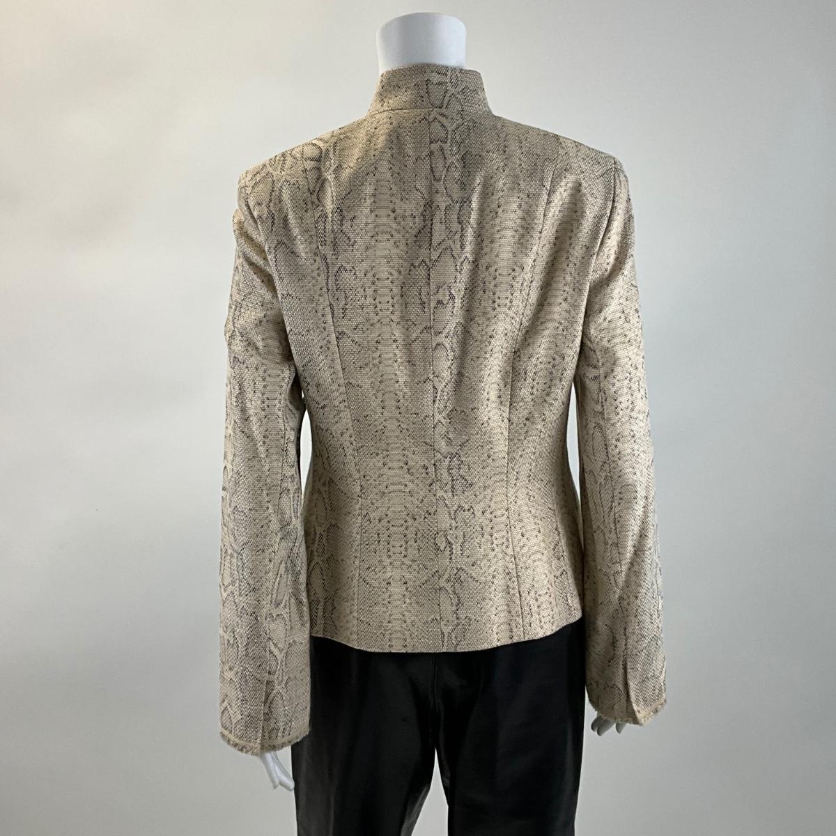 379 New ELIE TAHARI Lydia Khaki Snake Print Jacket Size M