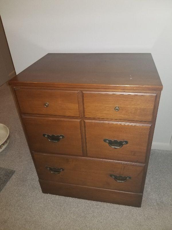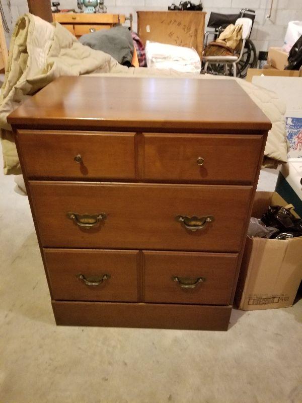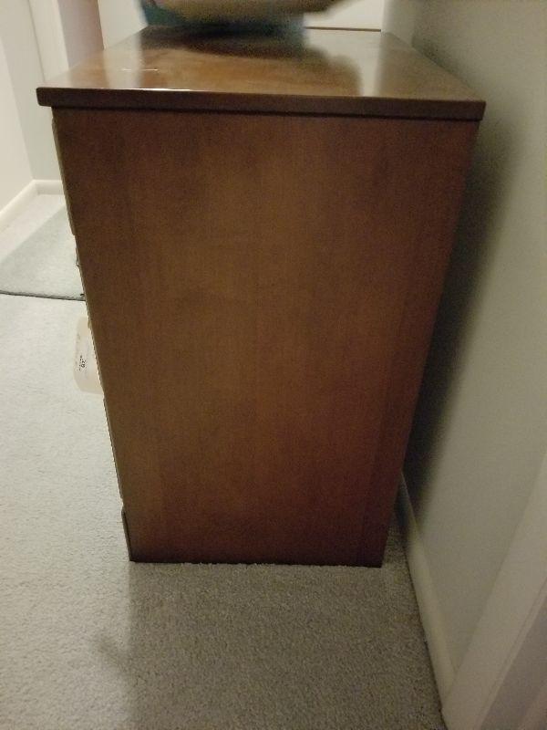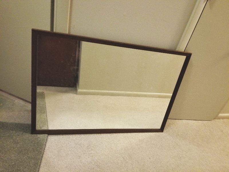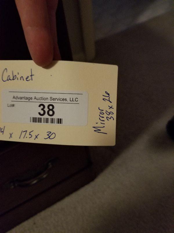 Dresser has 2 full drawers and one half drawer. Dresser measures 24"x17.5"x30". Lot includes a 38"x26" wall mirror.