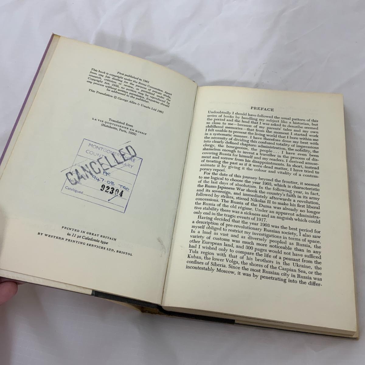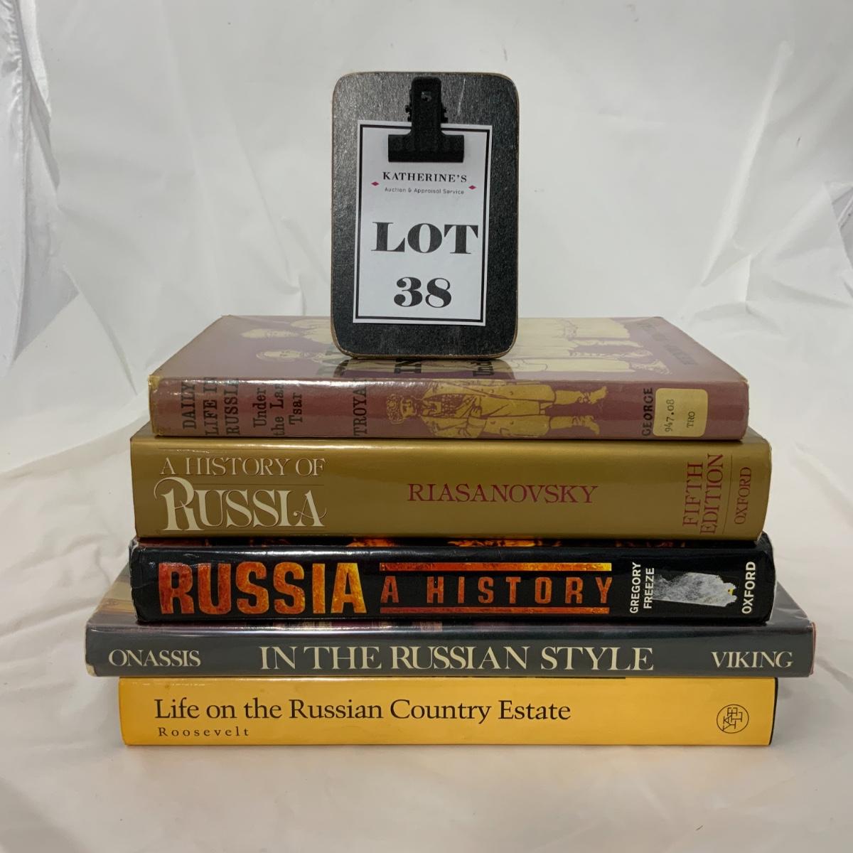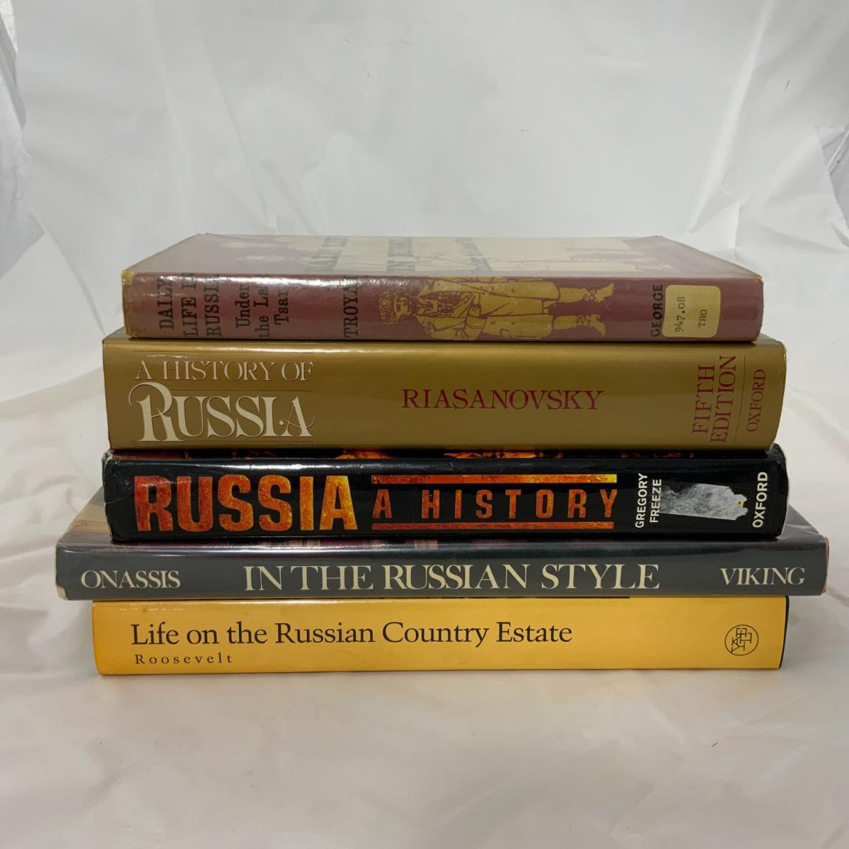From the Estate of Peter Radovanovich: Five books about Russian History and Lifestyle over the years. Life on the Russian Country Estate by Priscilla Roosevelt | In The Russian Style by Jacqueline Onassis and the Metropolitan Museum of Art | Russia; A History by Gregory Freeze | A History of Russia by Nicholas V Riasanovsky | Daily Life in Russia Under the Last Tsar by Henri Troyat. All books are in good used condition. Please see photos for details and condition. ::: Shipping is available on this lot. If you require shipping you must let us know at the close of the auction. We will coordinate with you after the item has been won. Shipping fees will include insurance up to or exceeding the value of all items being mailed. If you have any questions regarding this lot please contact the auctioneer either via this website, by direct email or by phone. PICK UP TIMES and other important information can be found in the TERMS and DESCRIPTION of the auction. Please take a look for pertinent information. Thanks!