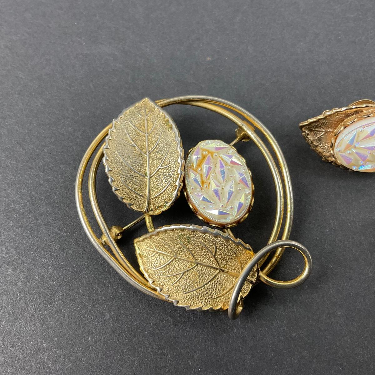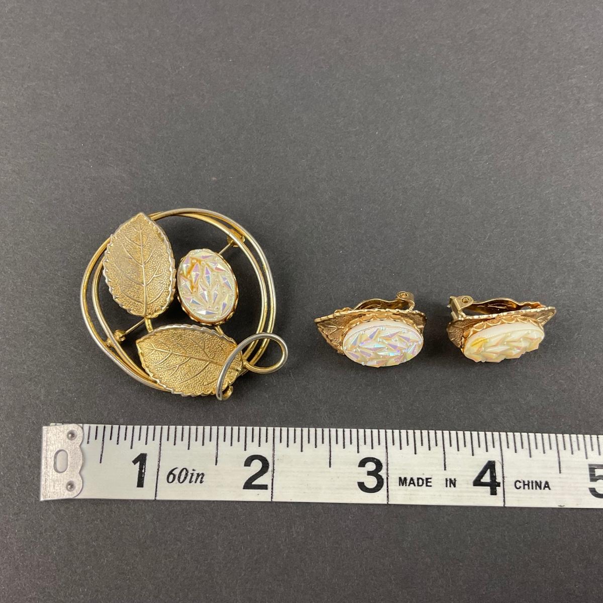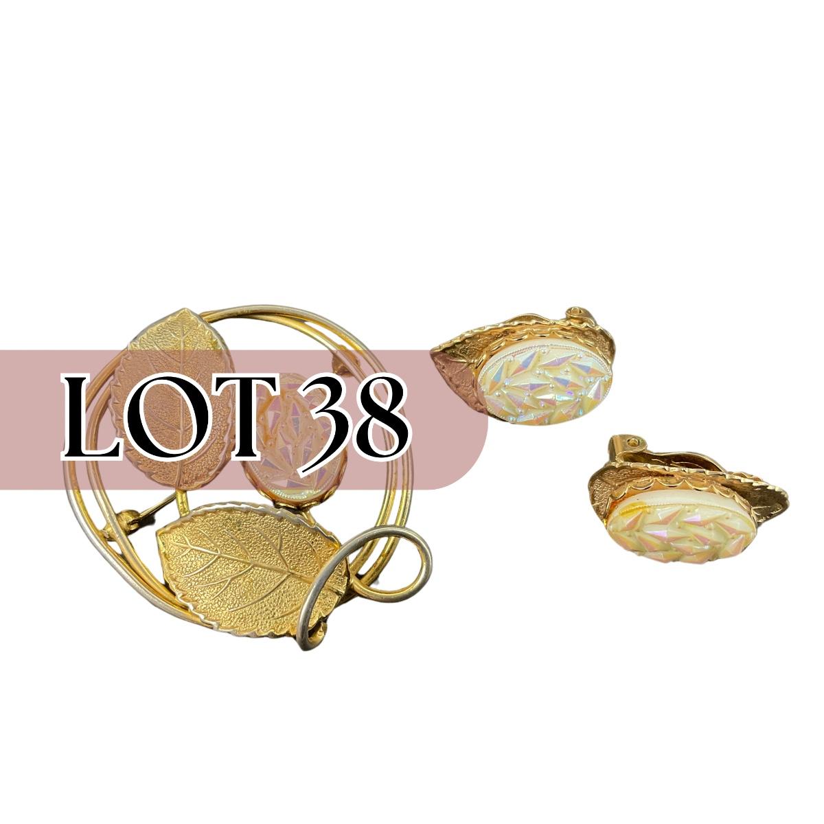 -38- JEWELRY | Gold Tone Brooch & Clip Earrings