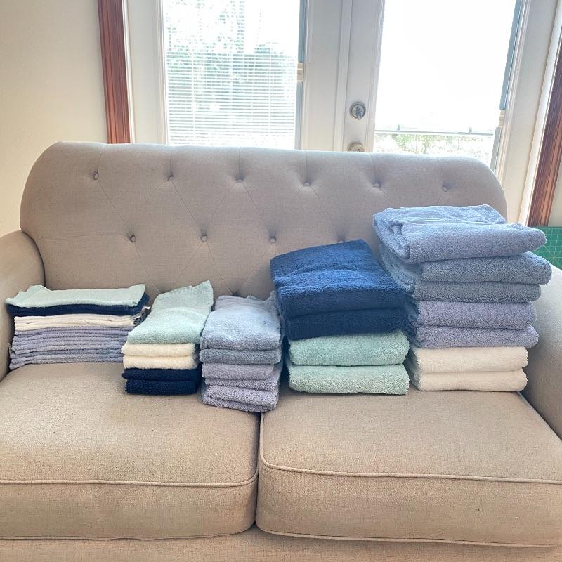 Includes 11 bath towels, 11 hand towels, 16 Face Towels