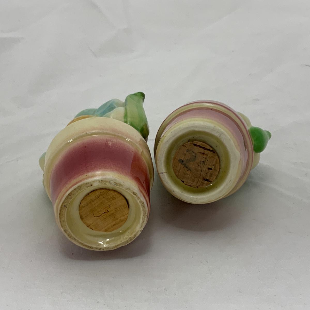 From the Estate of Peter and Alice Radovanovich: I love the bright colors on these Salt and Pepper Shakers. Shawnee was really smart when it came to their designs, making all the colors match across the product line, so that you can continually add to your collection. These shakers have a manufacturing flaw on one of them, pictured. Please see photos for details and condition. ::: Shipping is available on this lot. If you require shipping you must let us know at the close of the auction. We will coordinate with you after the item has been won. Shipping fees will include insurance up to or exceeding the value of all items being mailed. If you have any questions regarding this lot please contact the auctioneer either via this website, by direct email or by phone. PICK UP TIMES and other important information can be found in the TERMS and DESCRIPTION of the auction. Please take a look for pertinent information. Thanks!