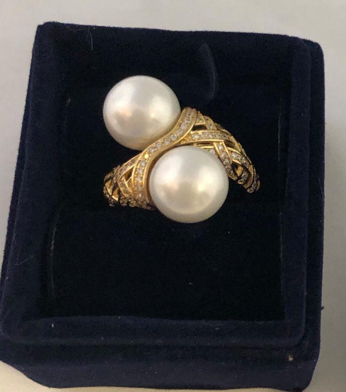 #38 Stauer Pearl/Gold Toned Ring Size 10