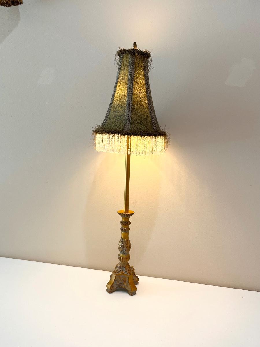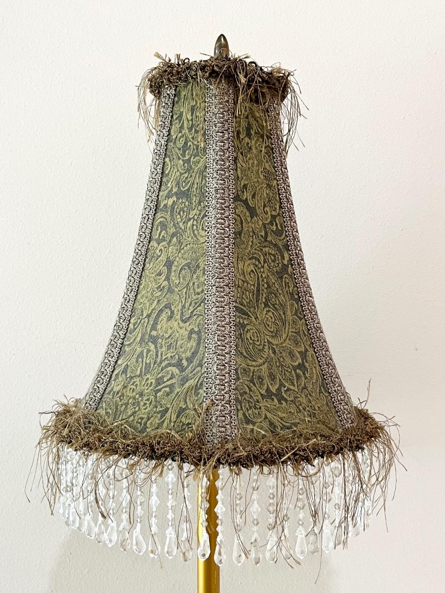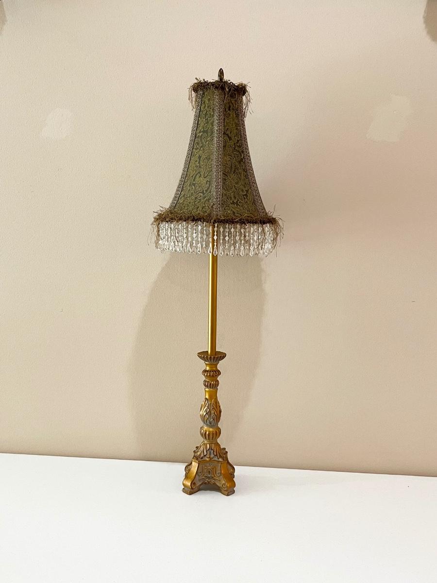 38” Tall Gold Distressed Table Lamp ~ With Beaded Lampshade
