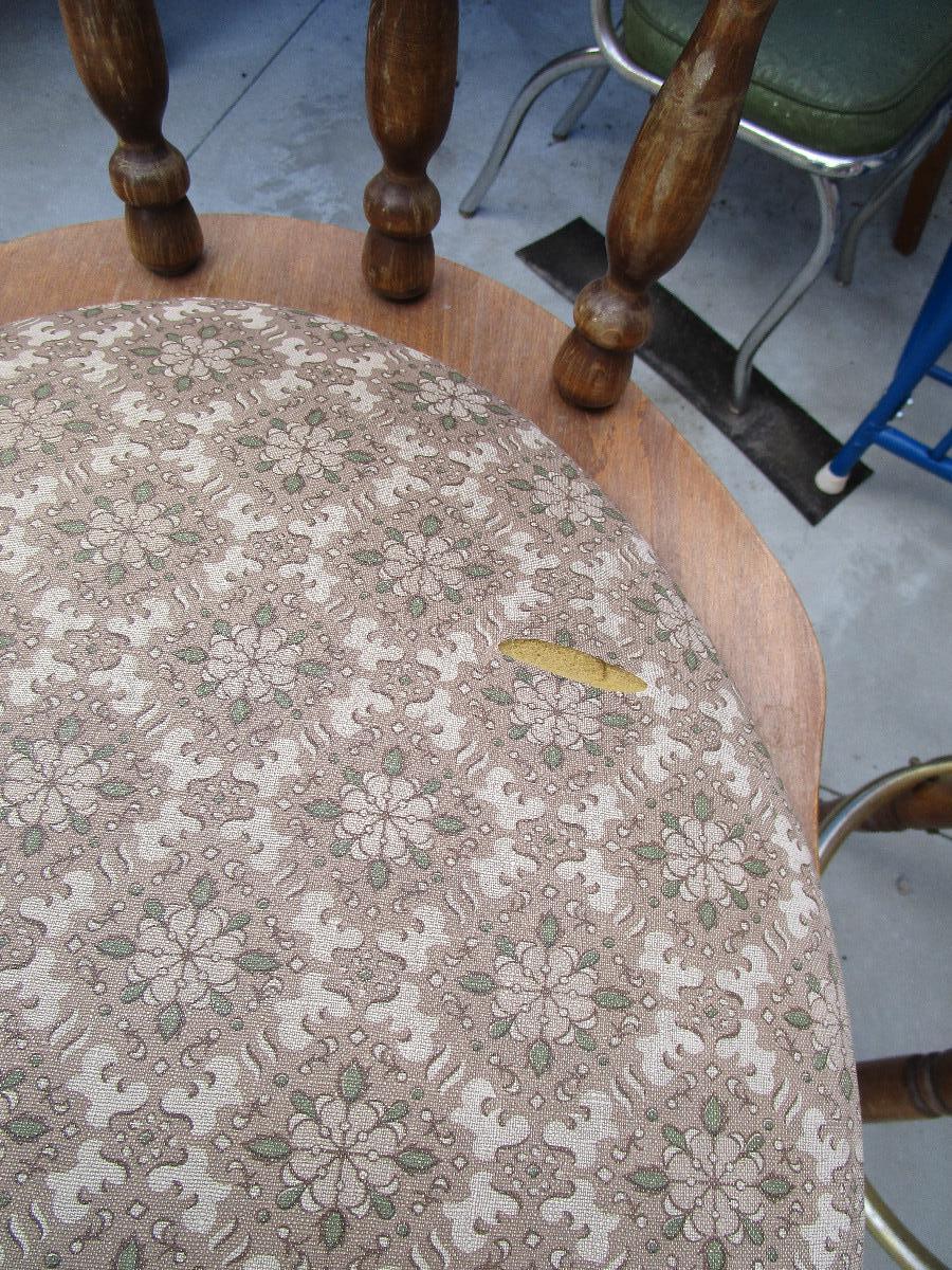 Really interesting stool, the picture does not do justice to the color. Small tear in seat.