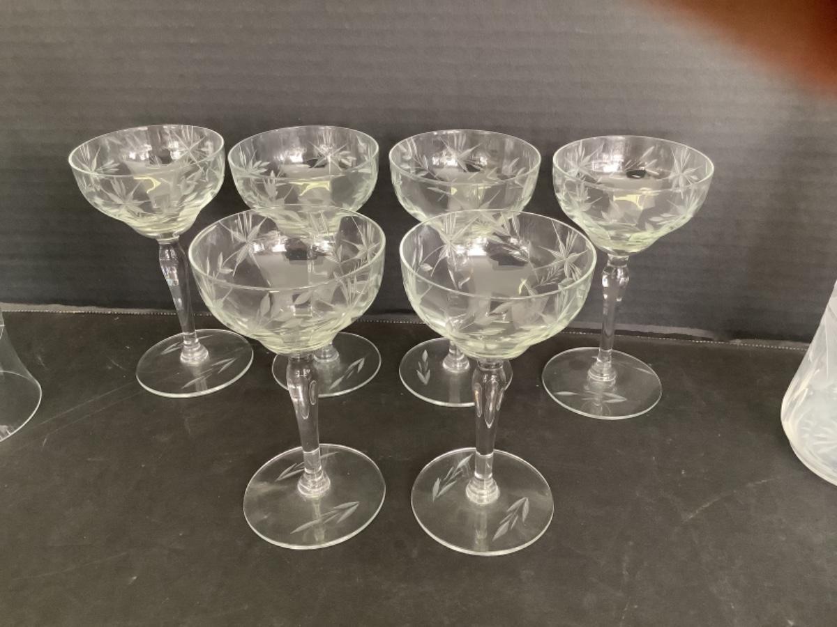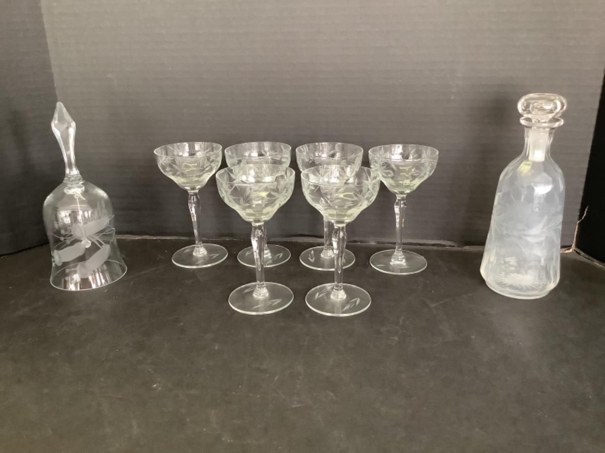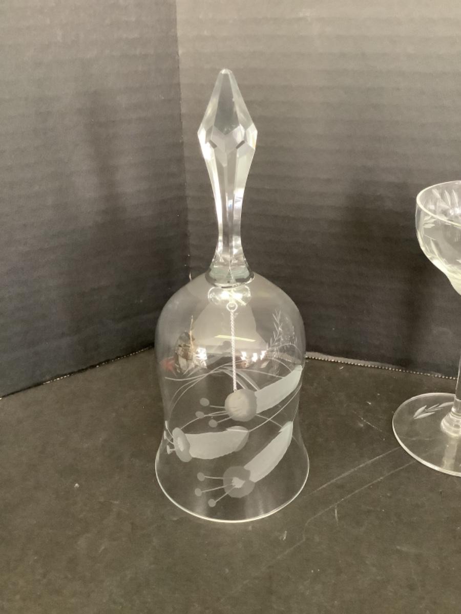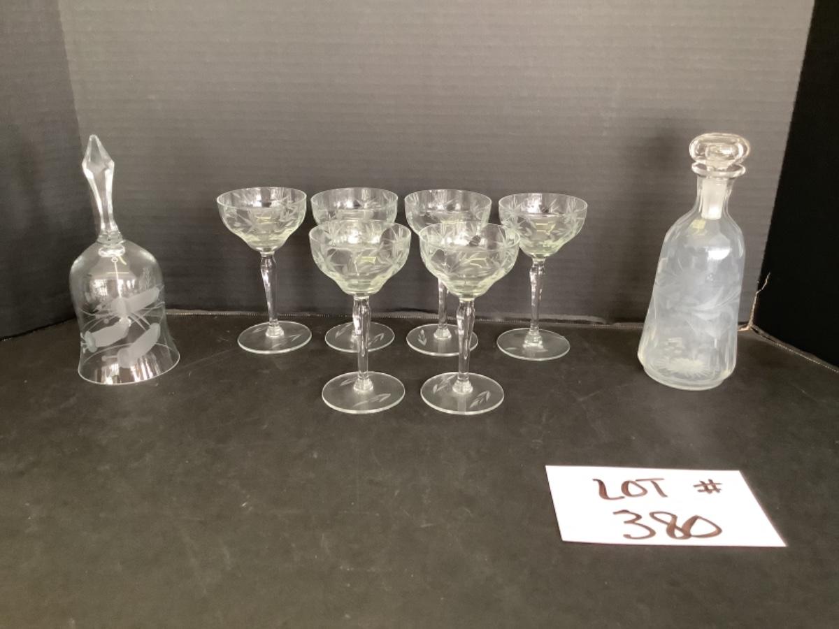 380  Set of Six Crystal Glasses/1 Crystal Bell / 1 Bottle