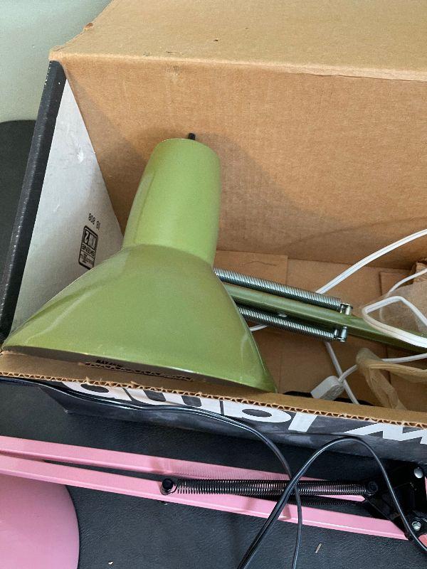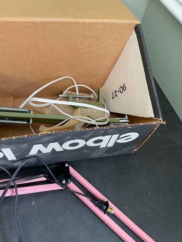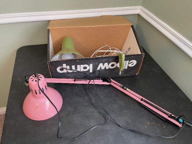 #380B  Green and Pink Elbow Lamps, (Green in Original Box)