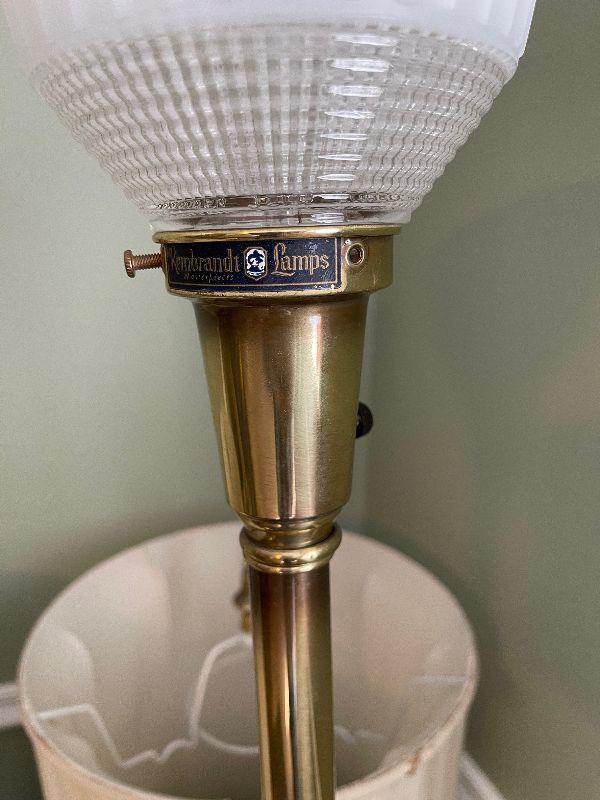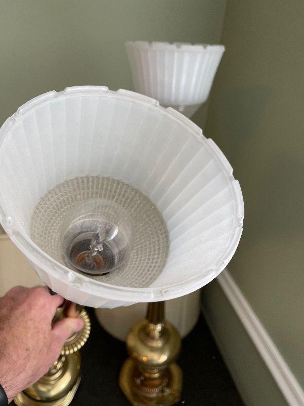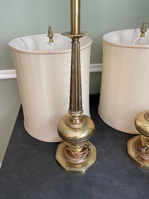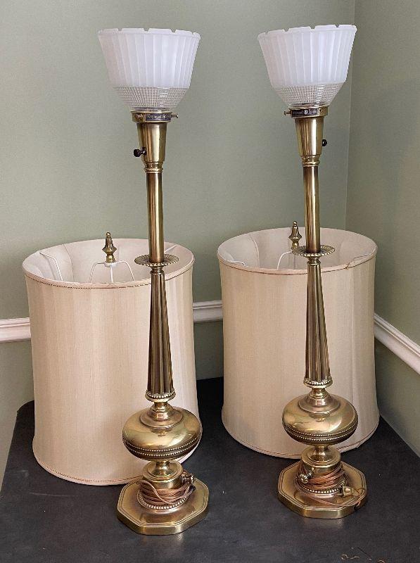 #381B Vintage Satin Brass Lamps (pair with shades)
