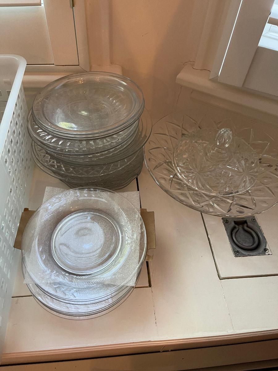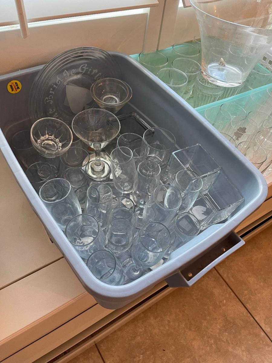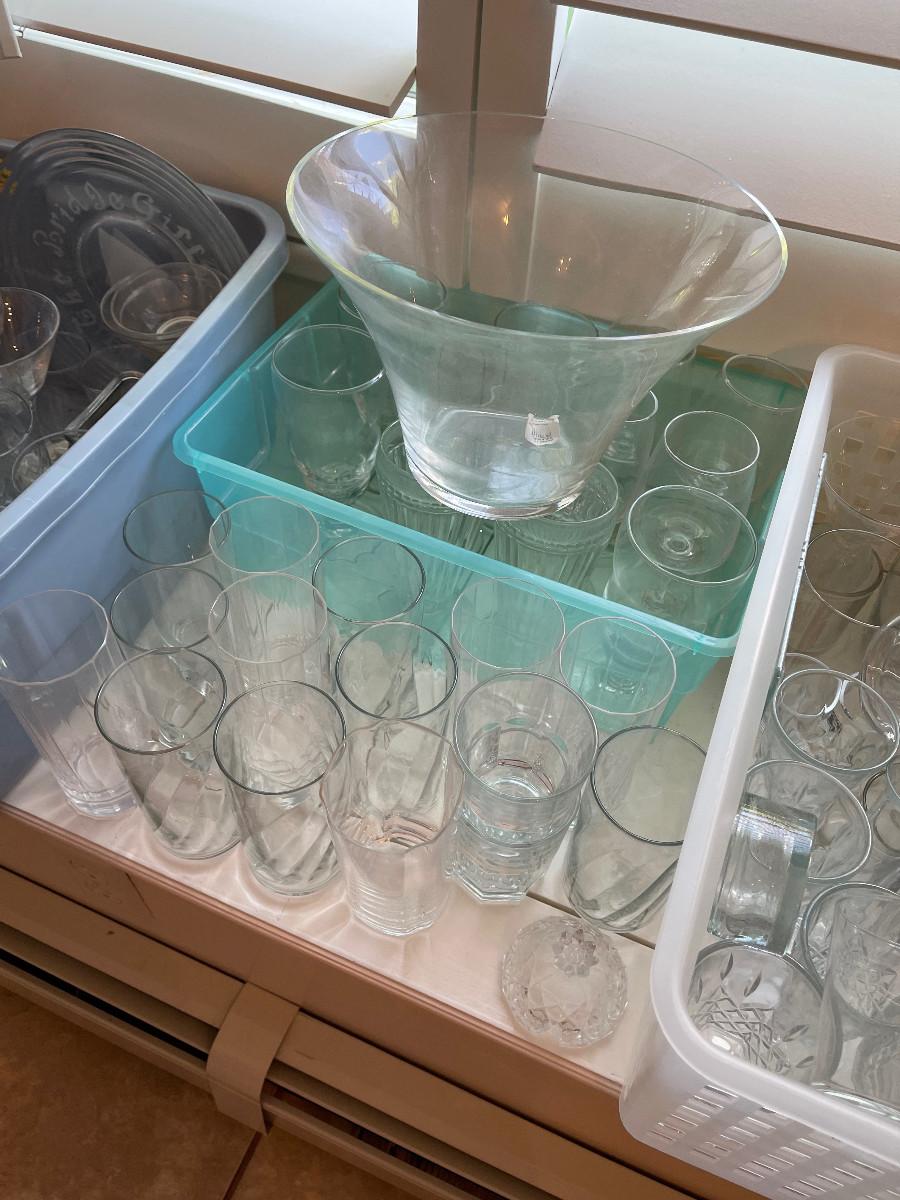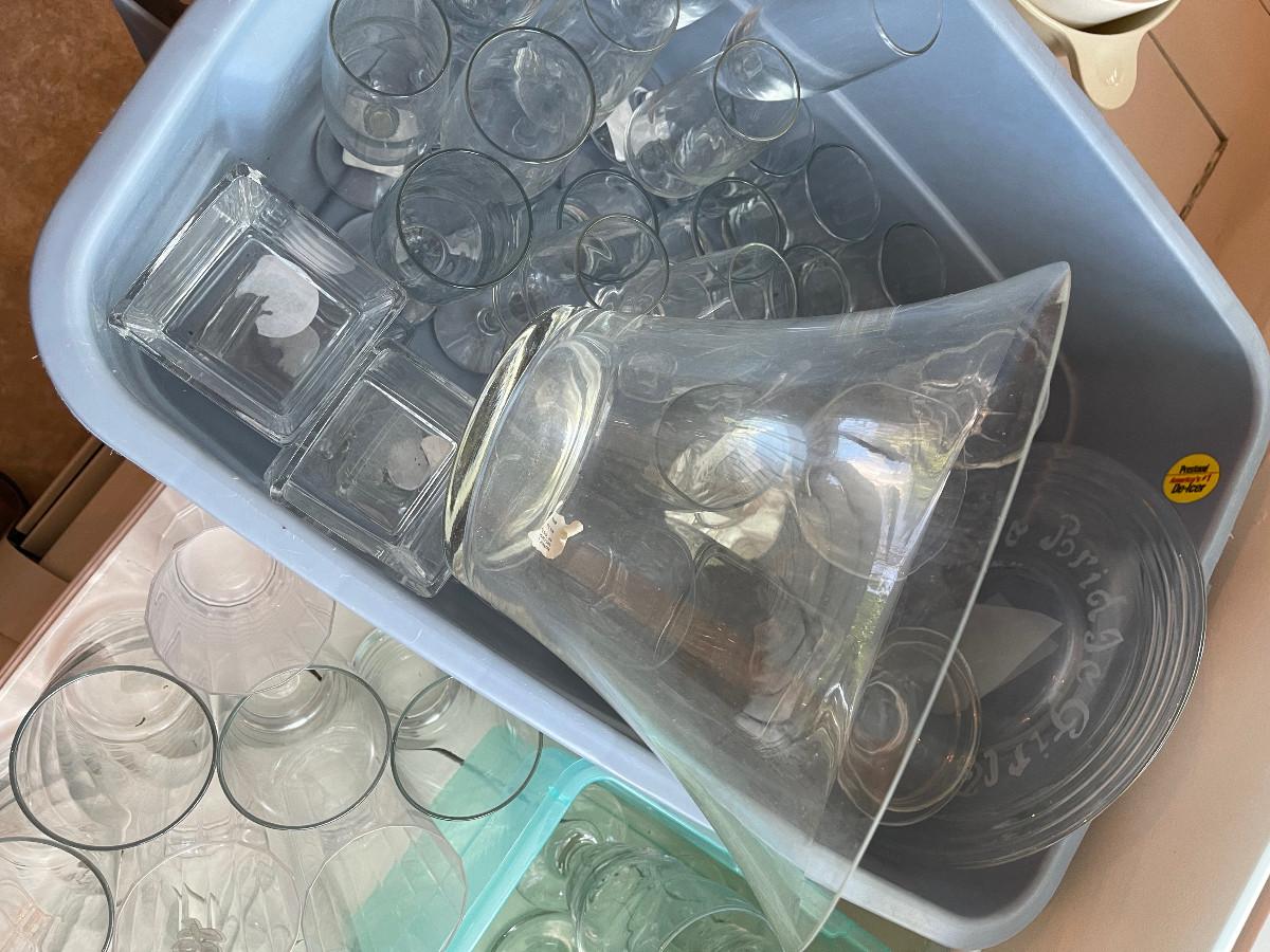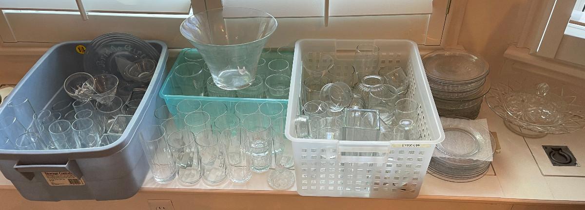 #382 1 GIANT Lot of CLEAR Glass: Glasses, Plates and Serving Bowls.