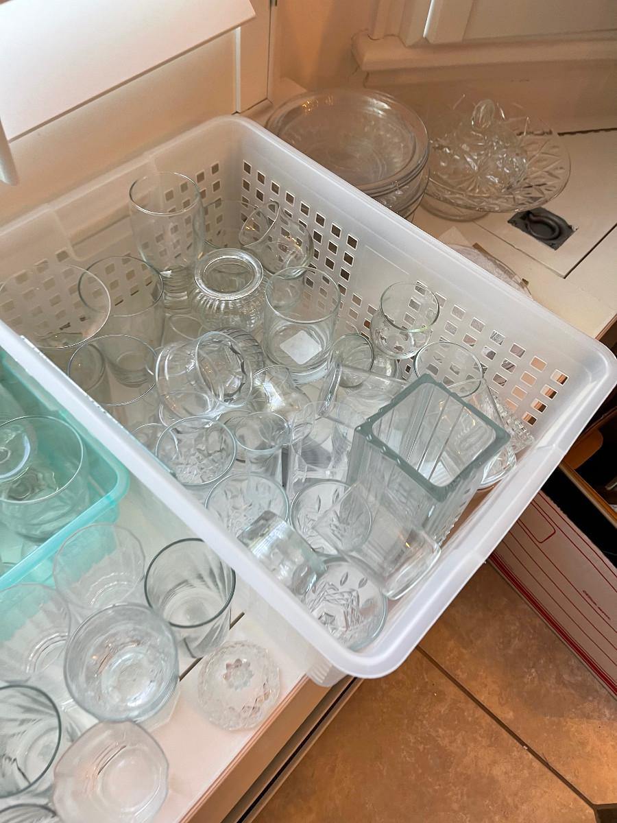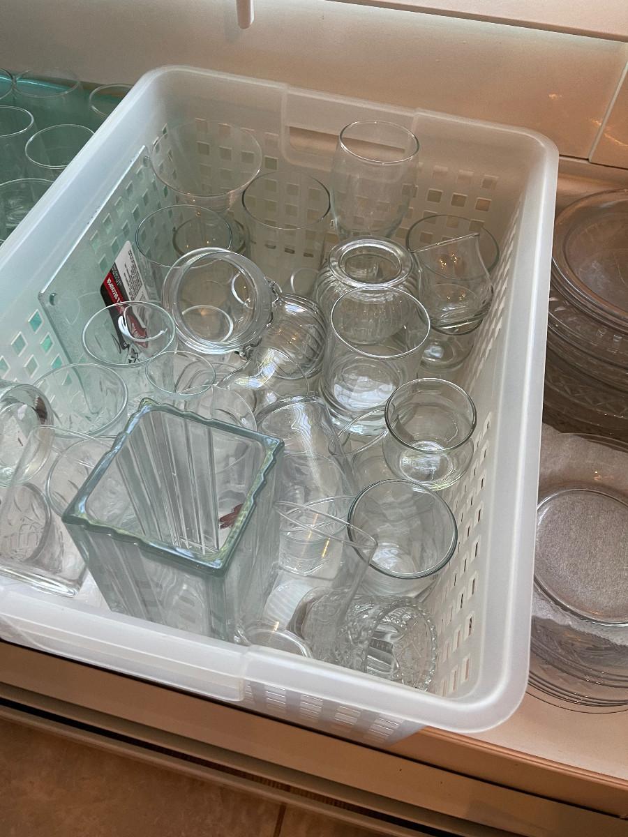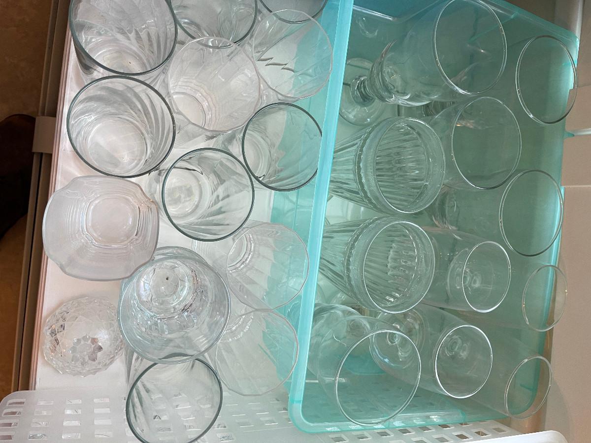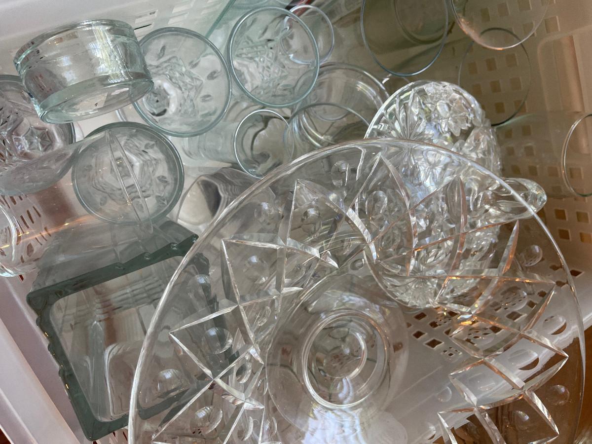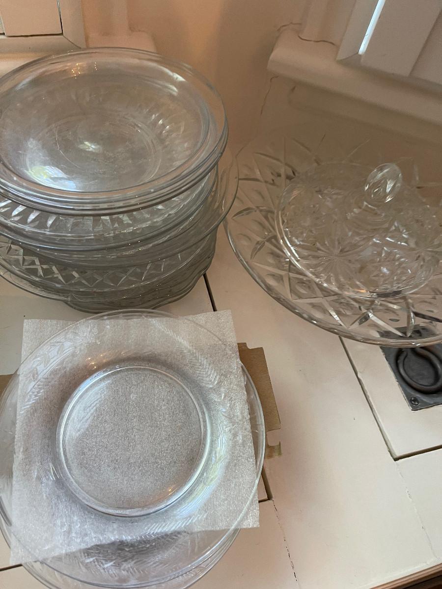 #382 1 GIANT Lot of CLEAR Glass: Glasses, Plates and Serving Bowls.