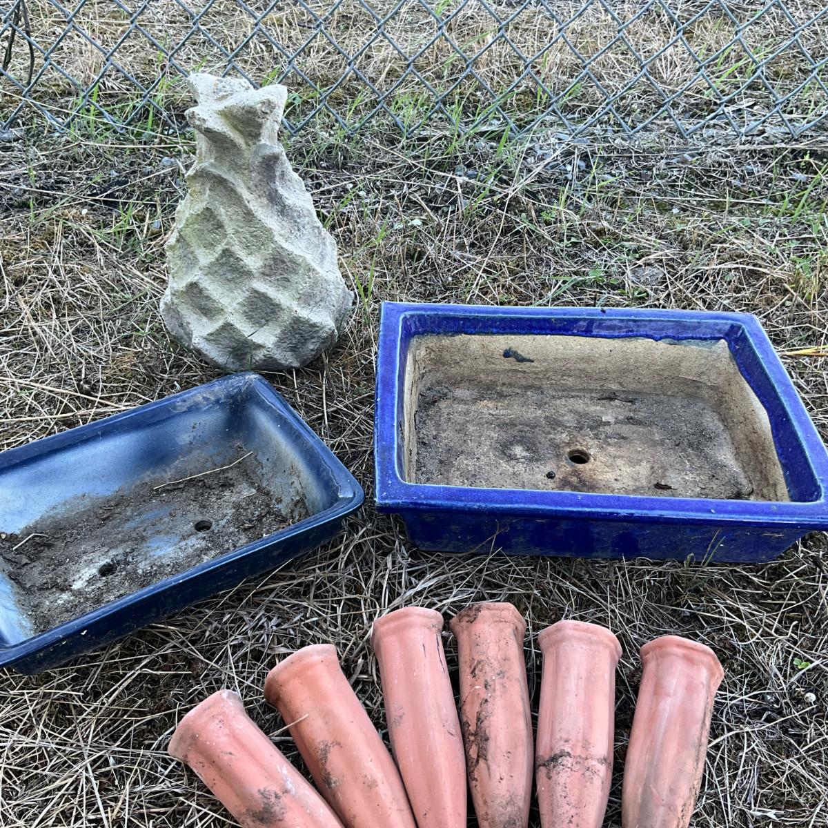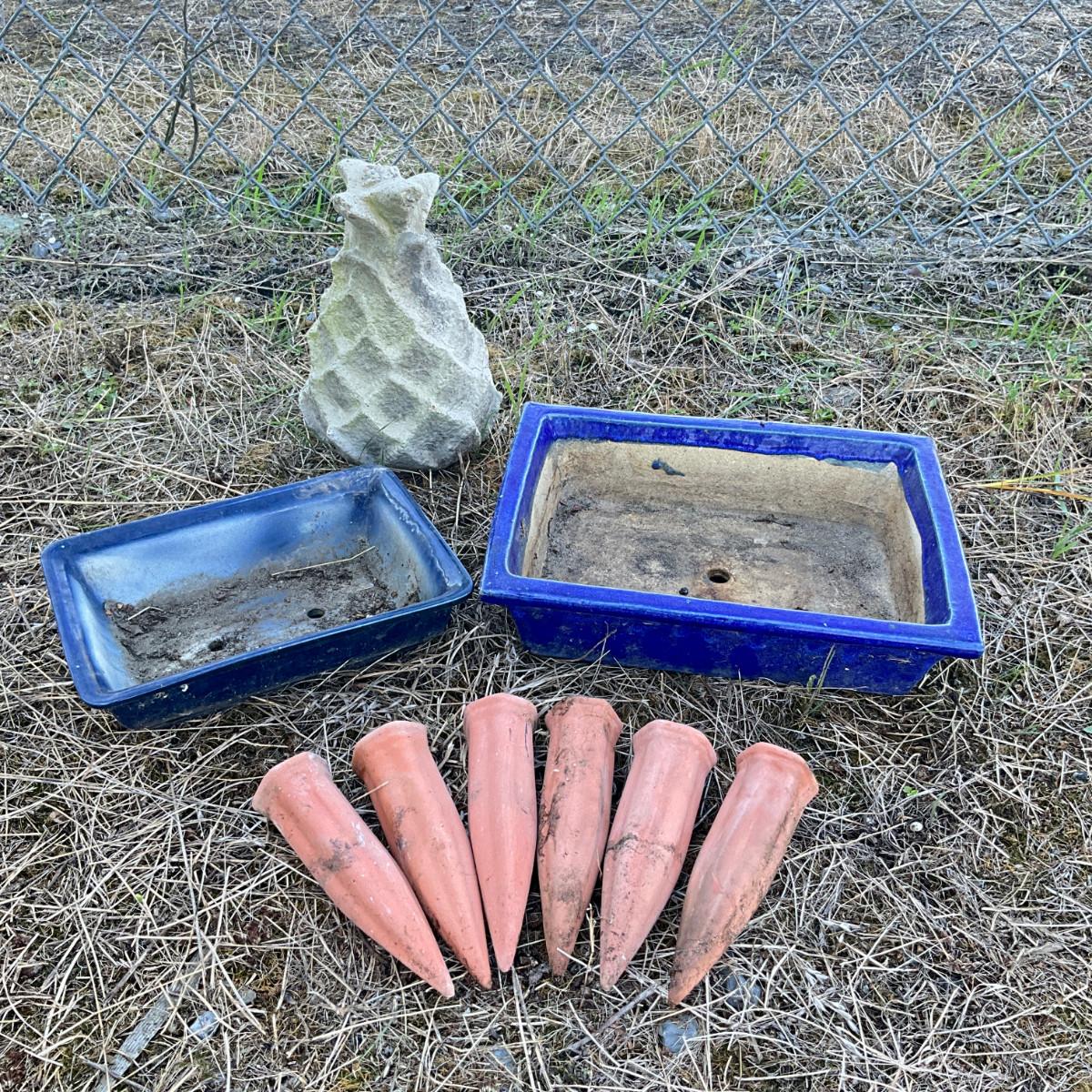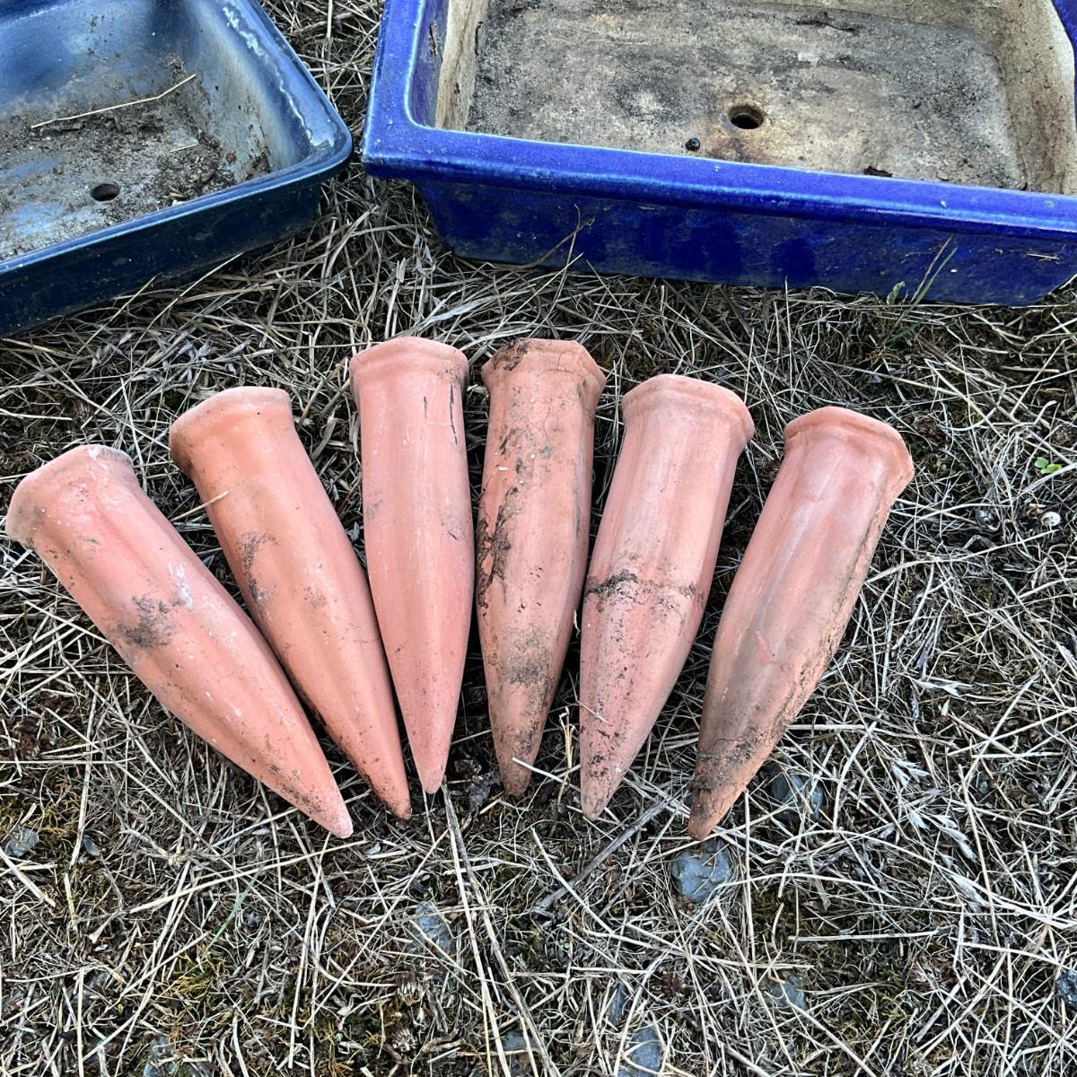 383 Blue Glazed Square Pot Trays & Terracotta Spikes