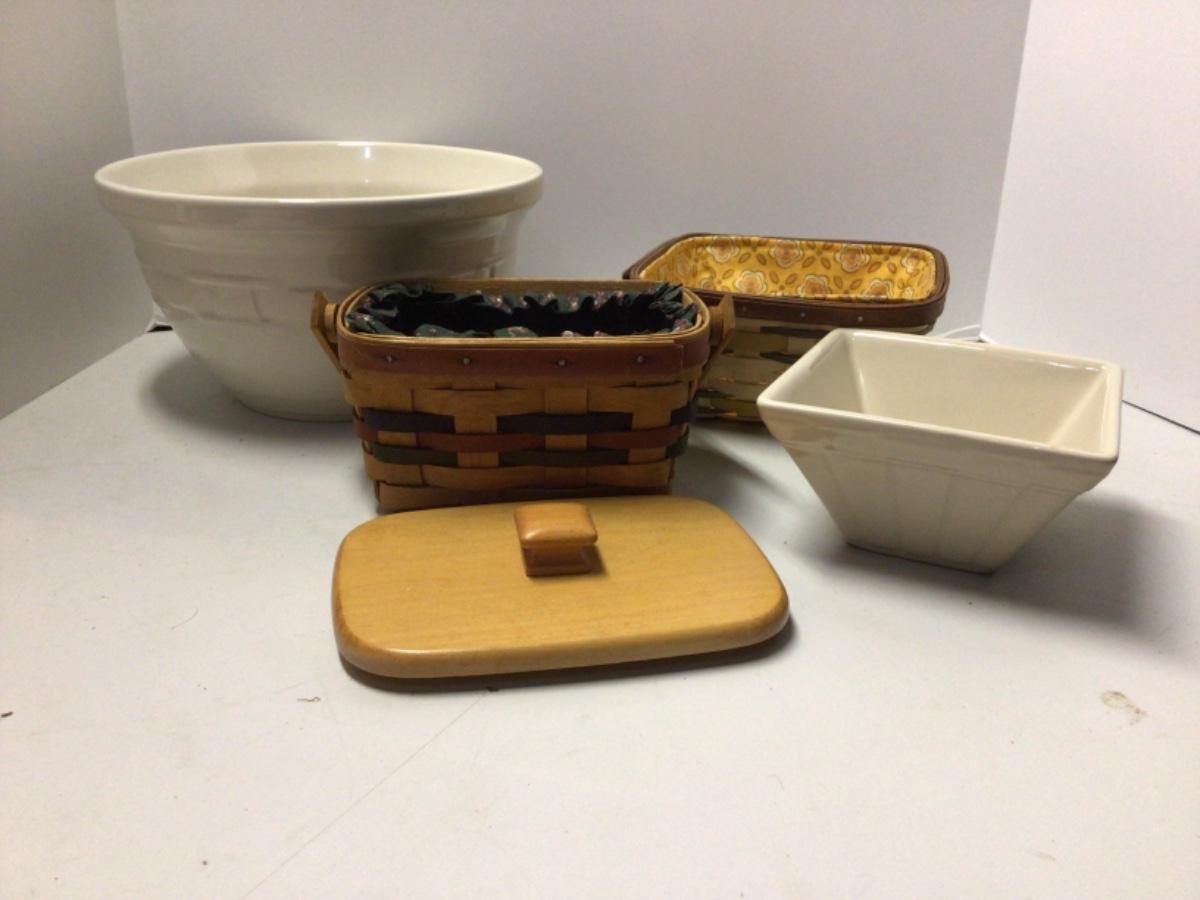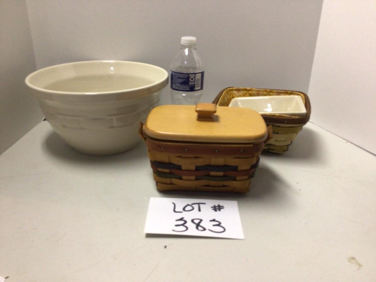 383 Two Longaberger Baskets with Large Mixing Bowl and small square