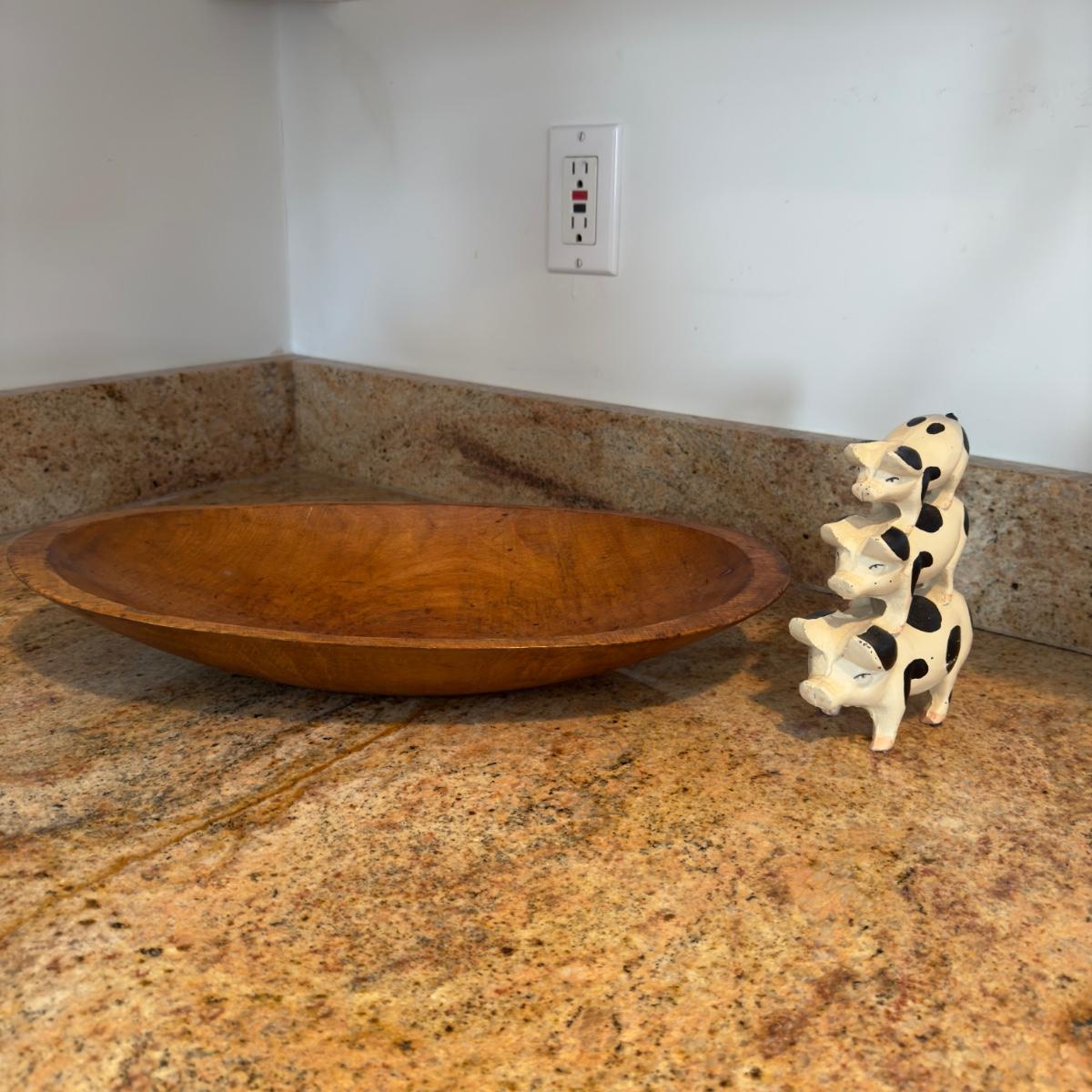 387 Antique Bread Bowl with Cast Iron Pig Door Stop