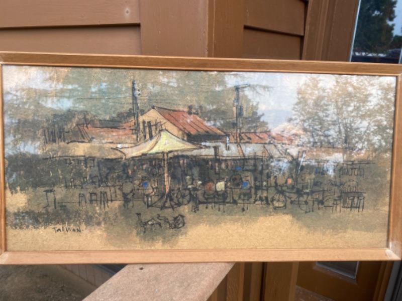 Signed Mid-Century Art, Ink/Pastel on recycled paper