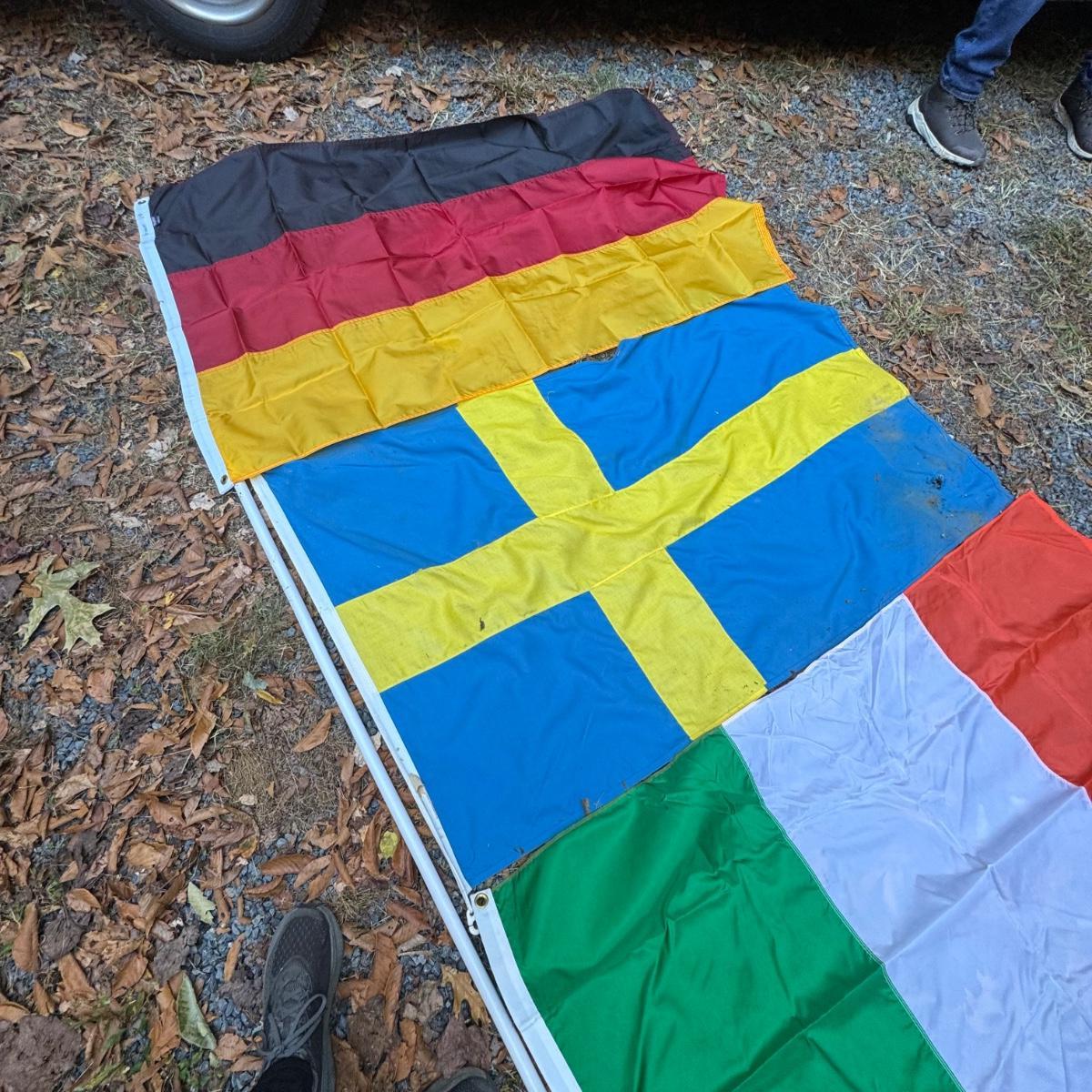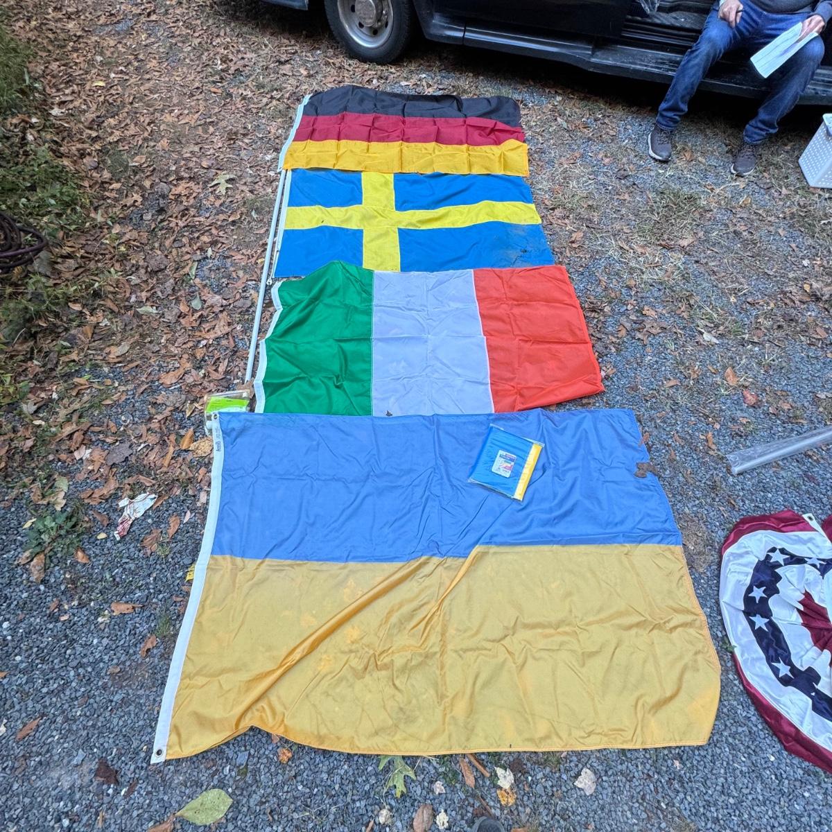 To include: Germany, Sweden-small hole, Italy & qty (2) Ukraine. Overall good shape. See pics for details. (1) Ukraine flag new in package.