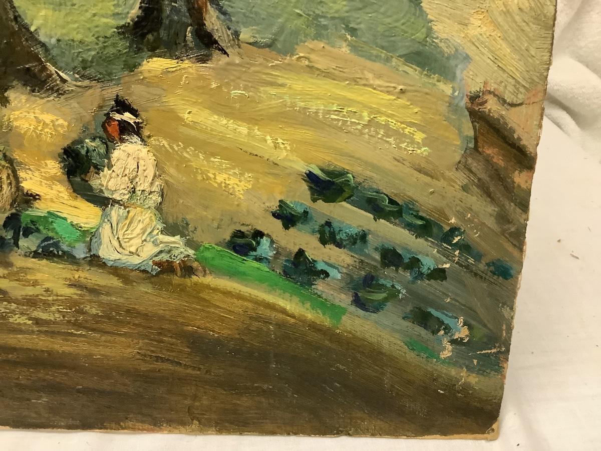 A - 388 Original Oil Painting on Board "Trading Crops" by Glen Ranney