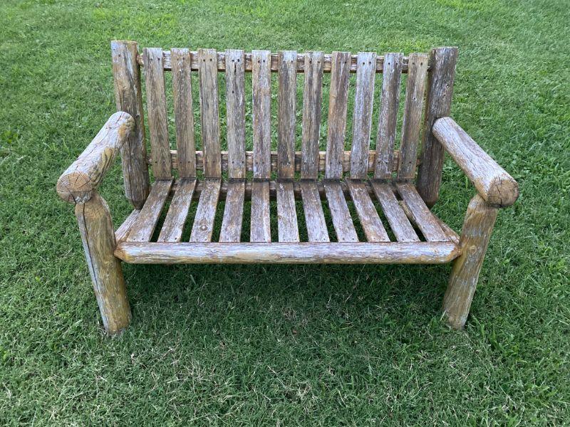 Outdoor Wooden Aidrondack Style Bench measuring 3'8" wide x 23,5" deep x 24" tall
