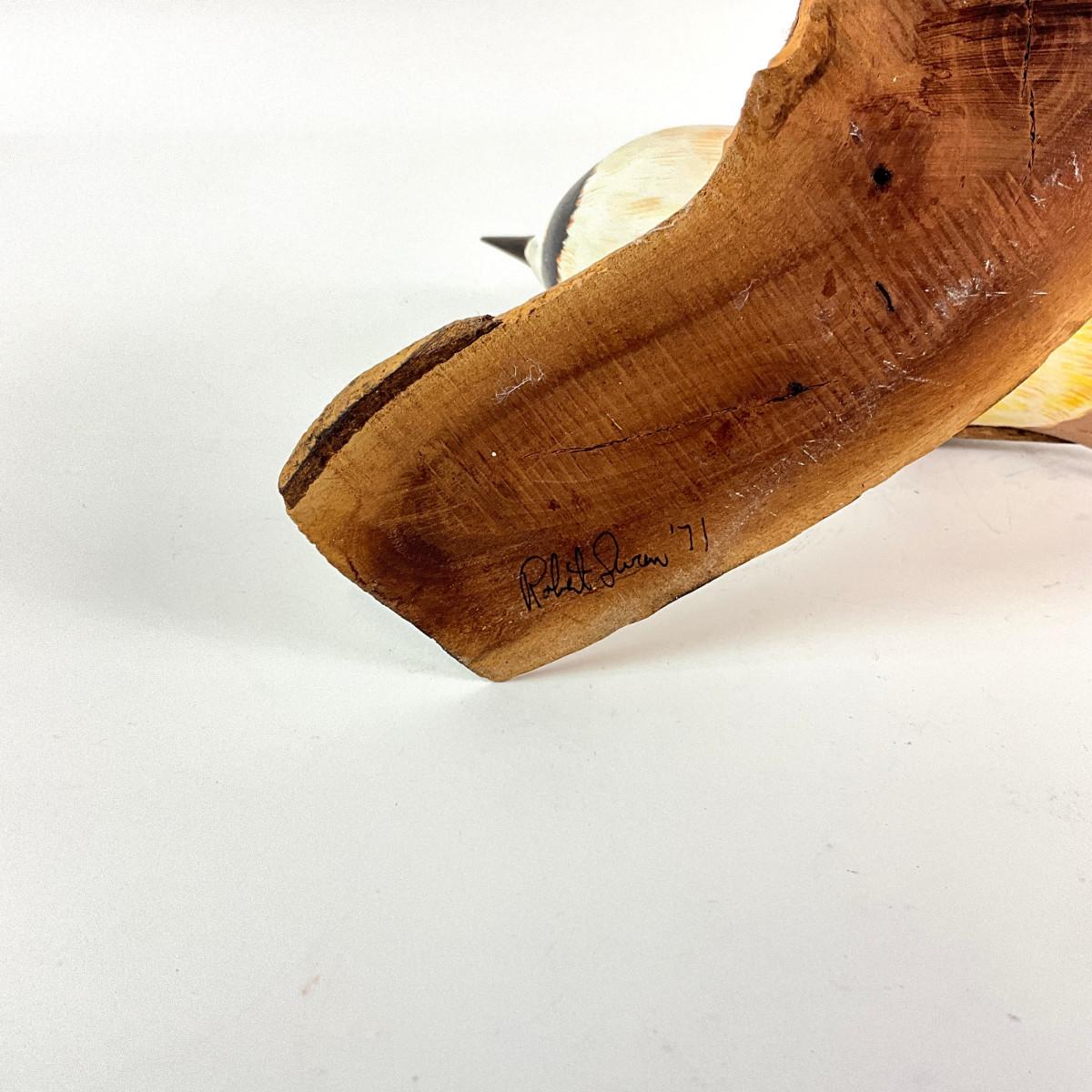 388 Carved Wooden Bird Sculpture Signed Robert S.