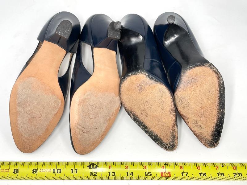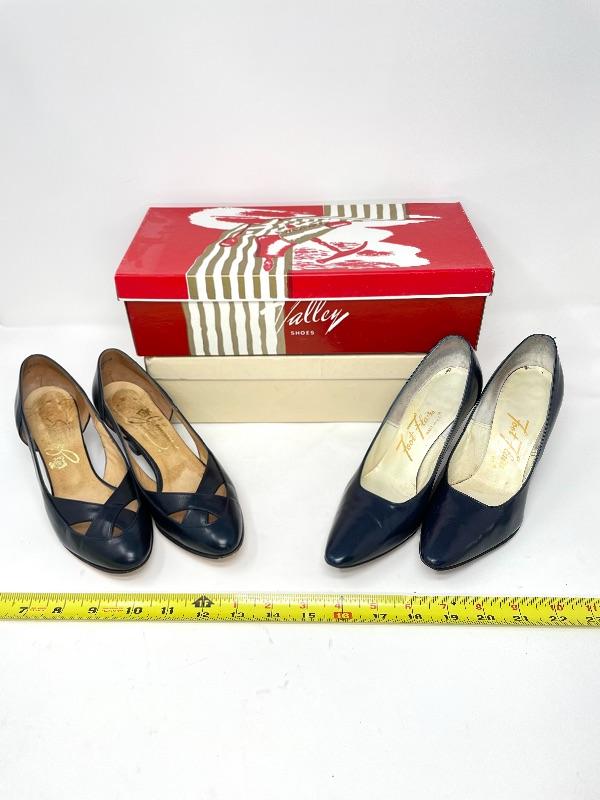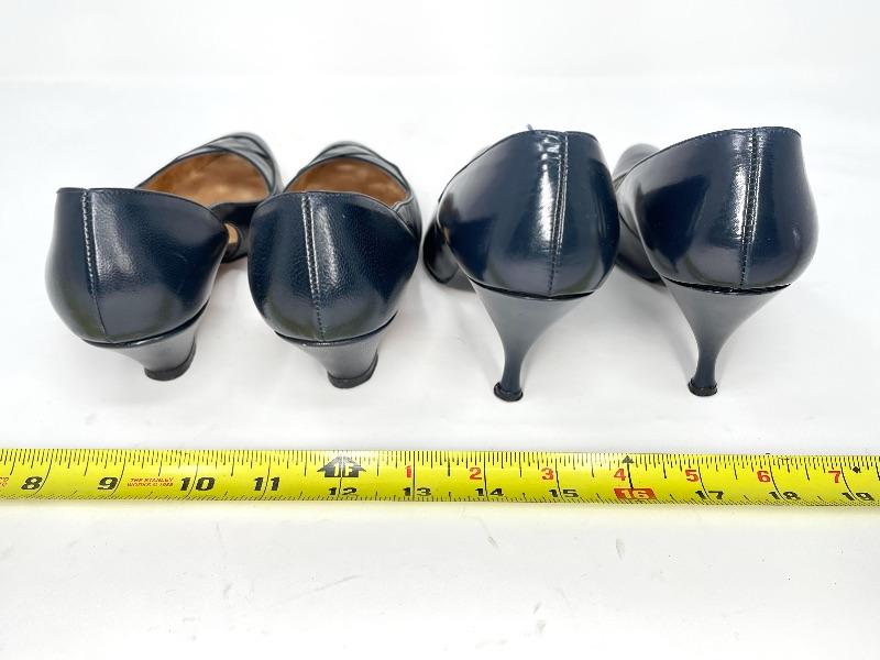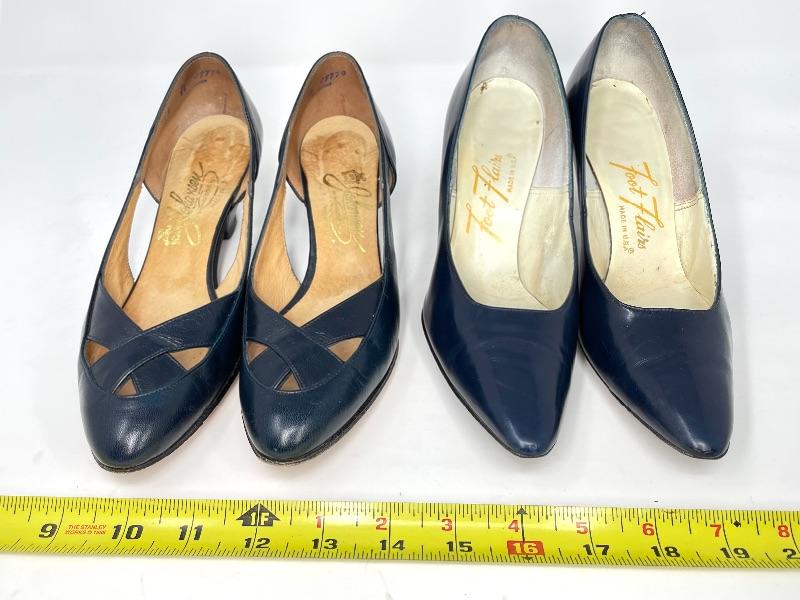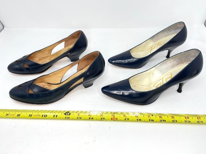 VINTAGE WOMENS SIZE 4 NAVY HEELS SET OF 2 #39