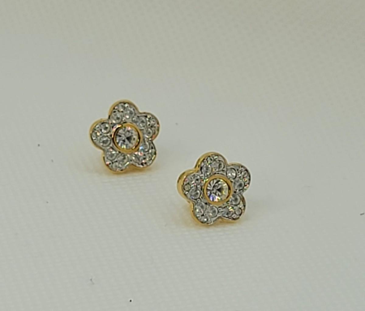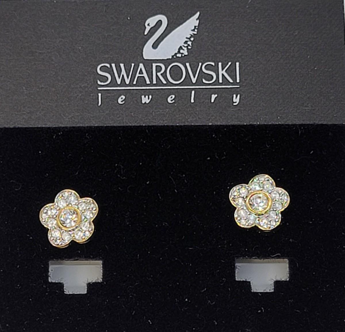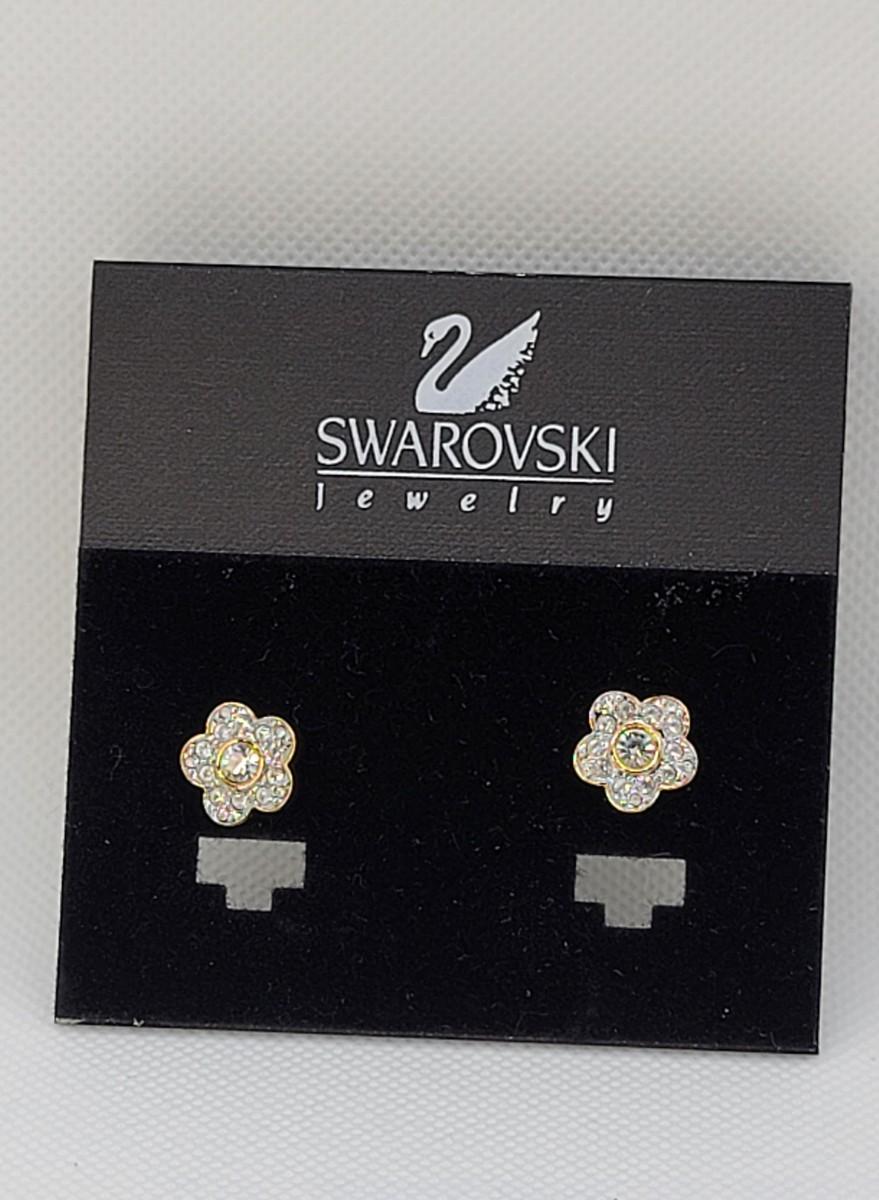 Swarovski Crystals Flower goldtone post pierced earrings-New!
