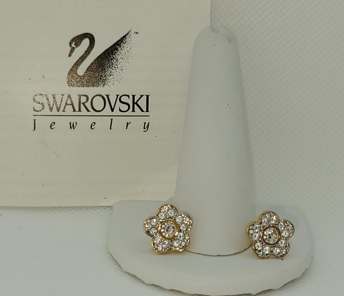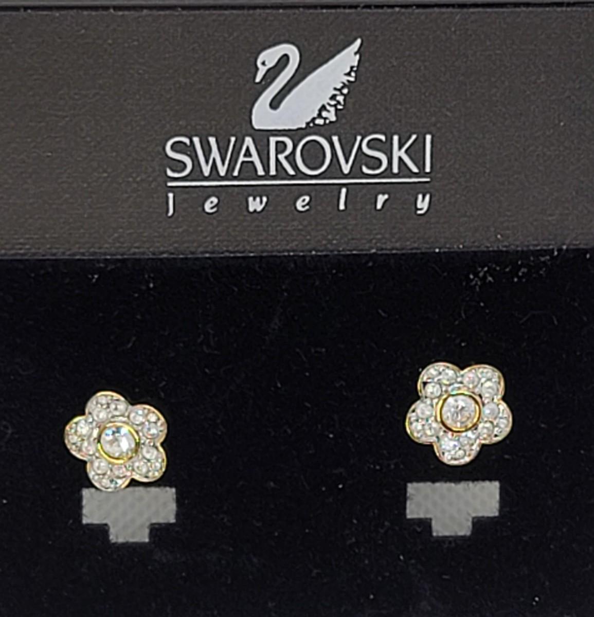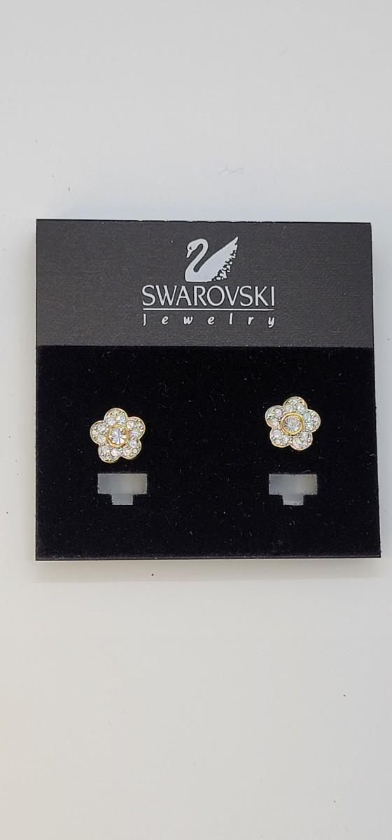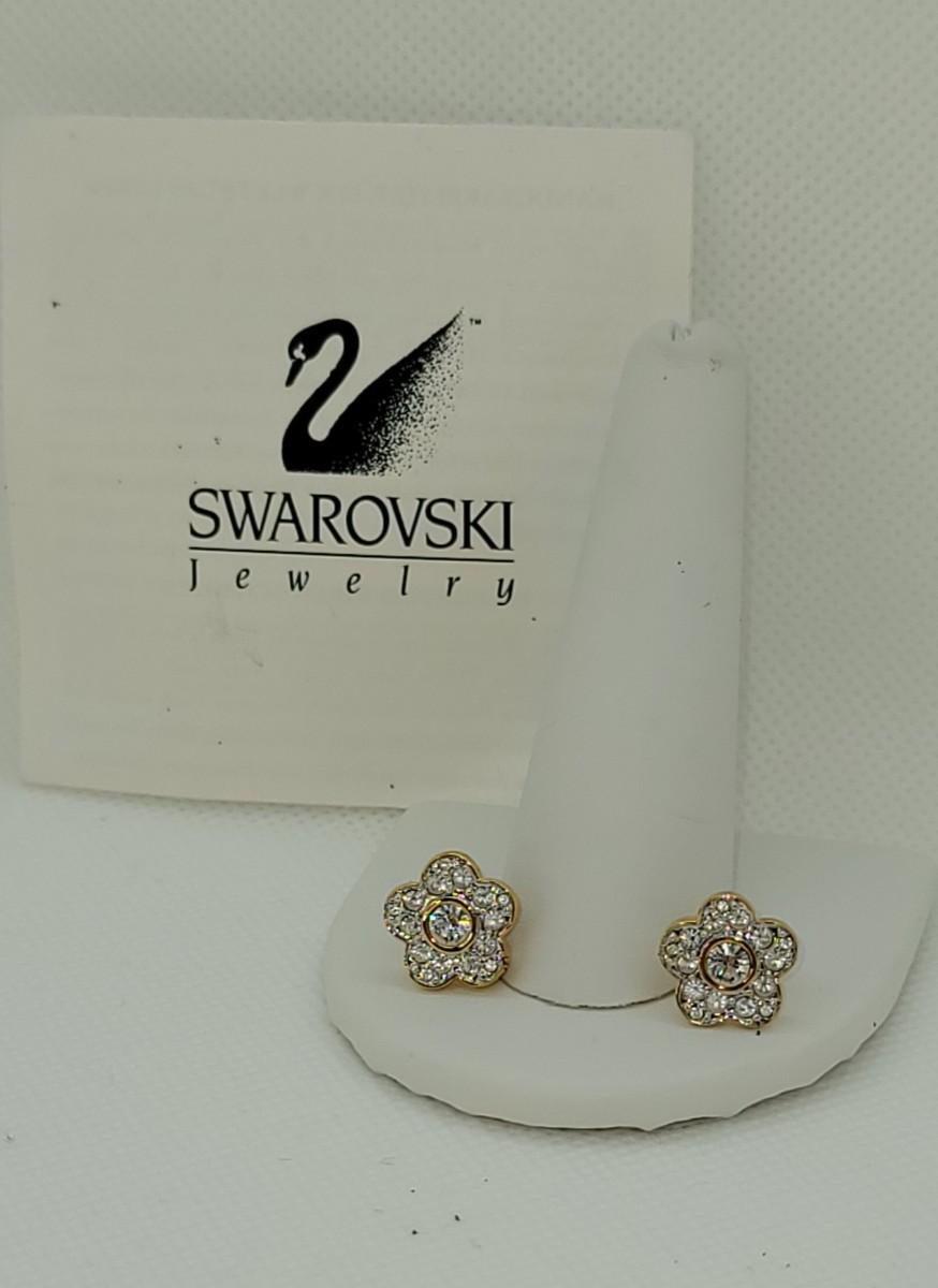 Swarovski Crystals Flower goldtone post pierced earrings-New!