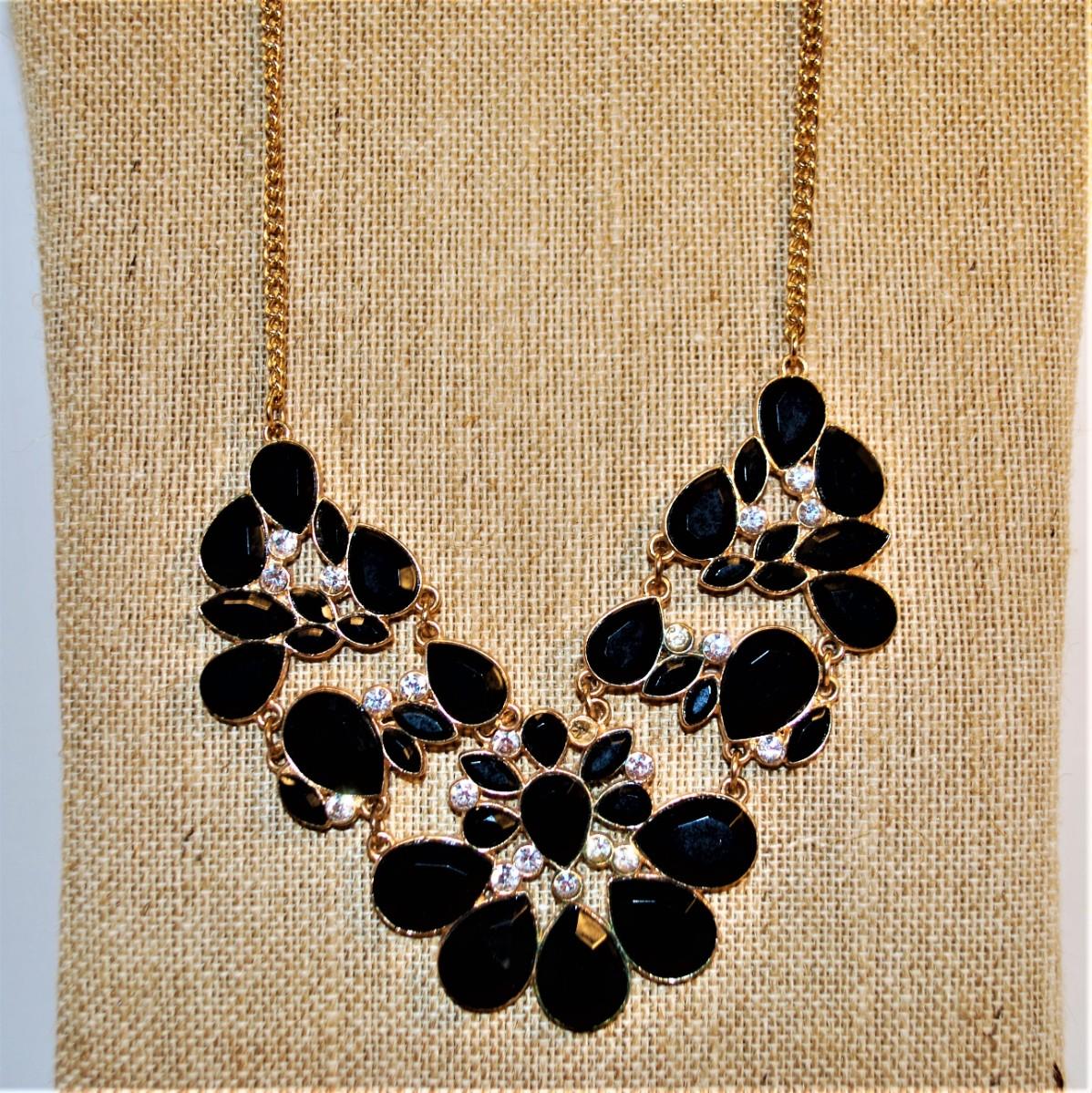 39 Black Teardrop Stones with Sparkle Clear Rhinestone Accents 22" L