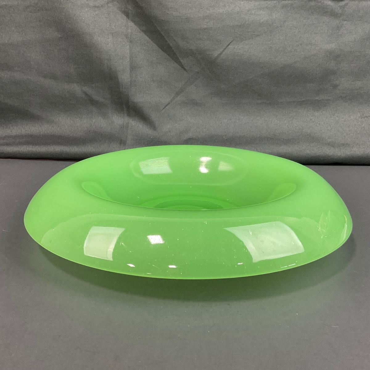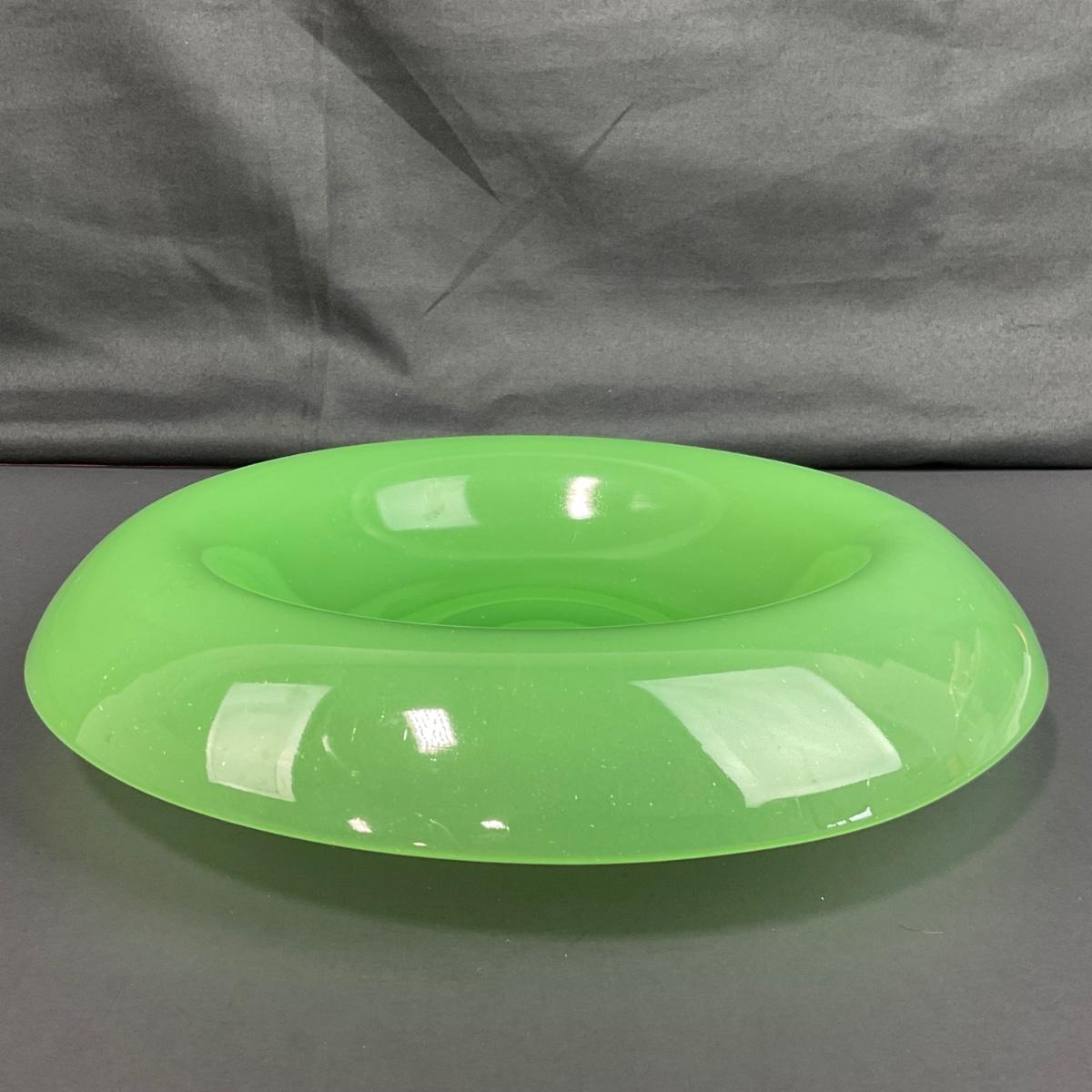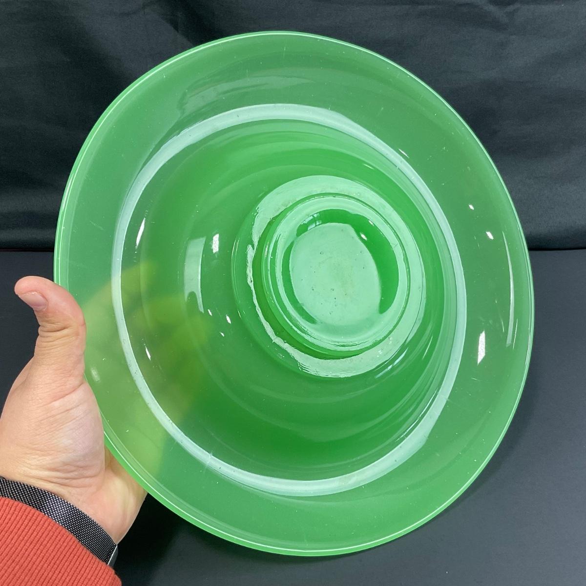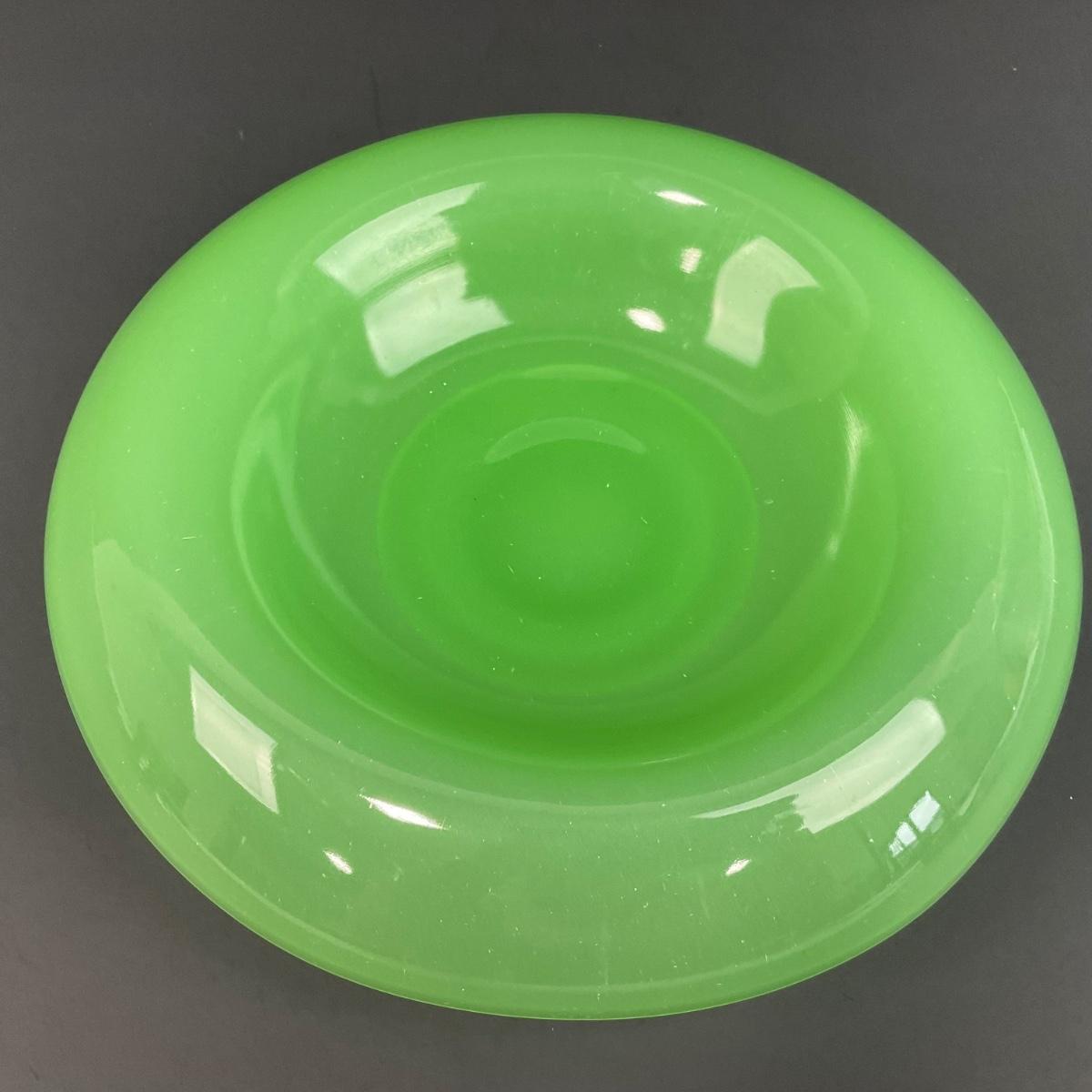 -39- FENTON | Jade Green Rolled Rim Console Bowl & Candle Stick Holders