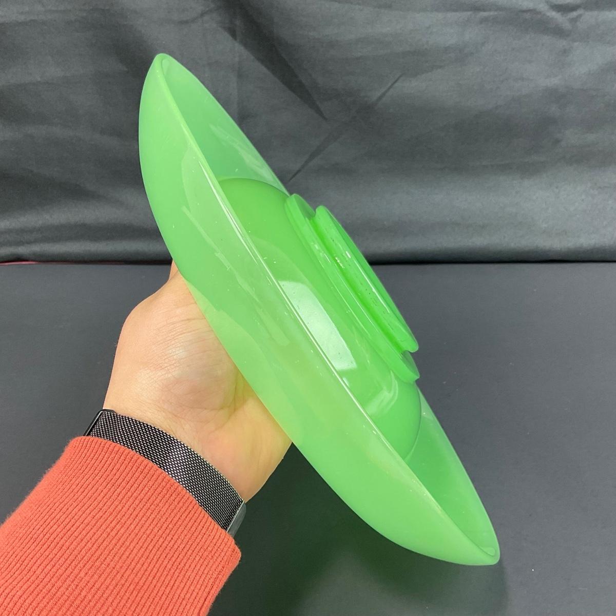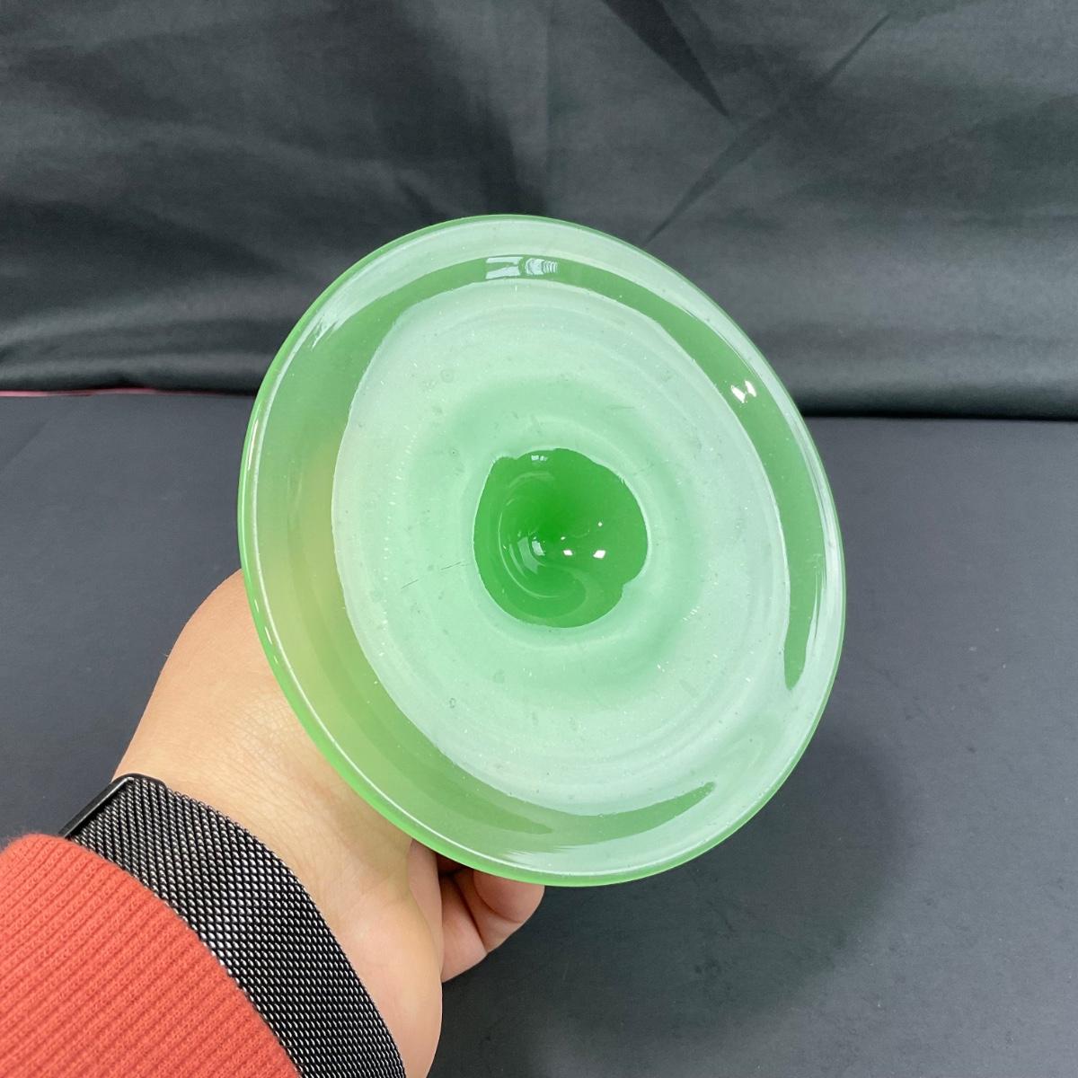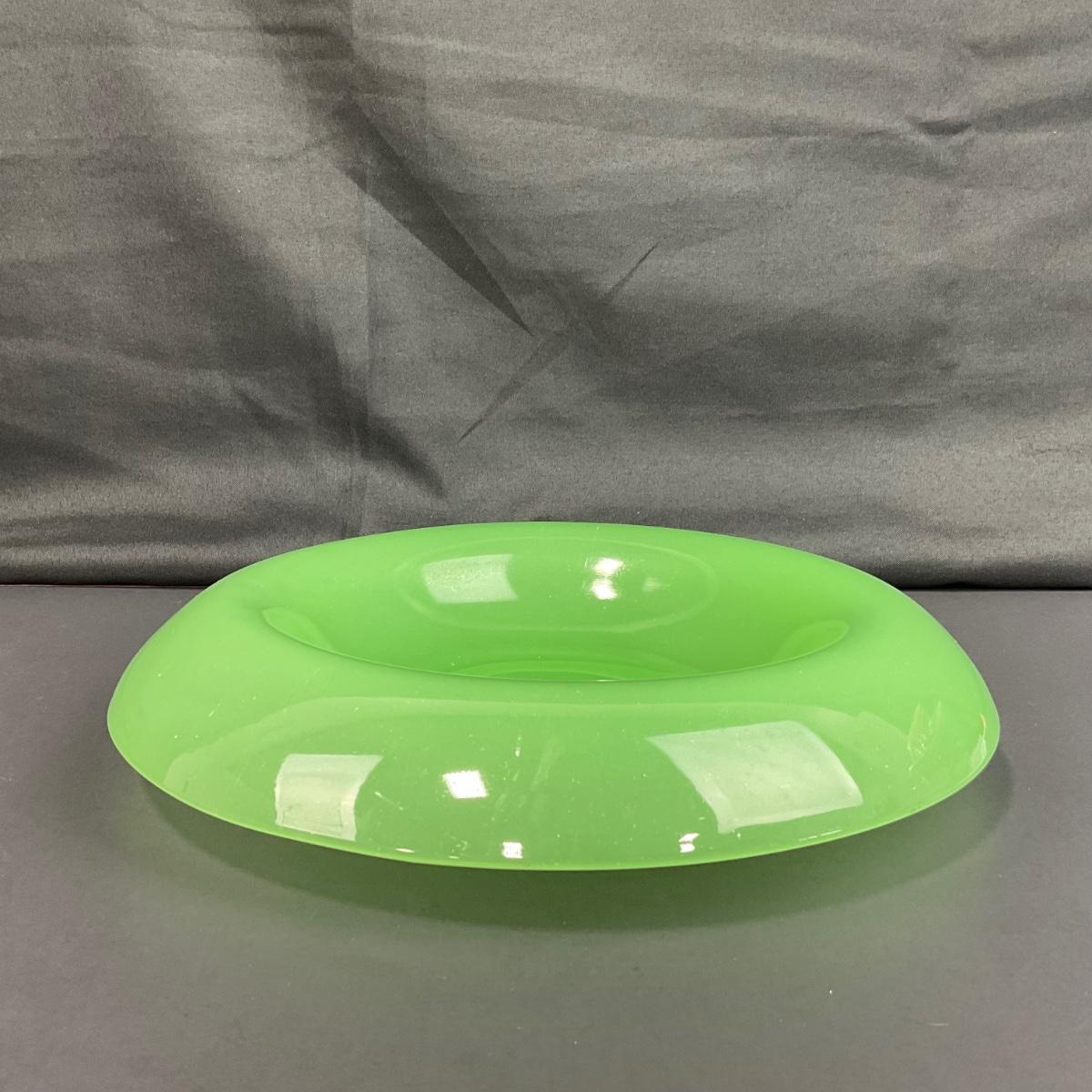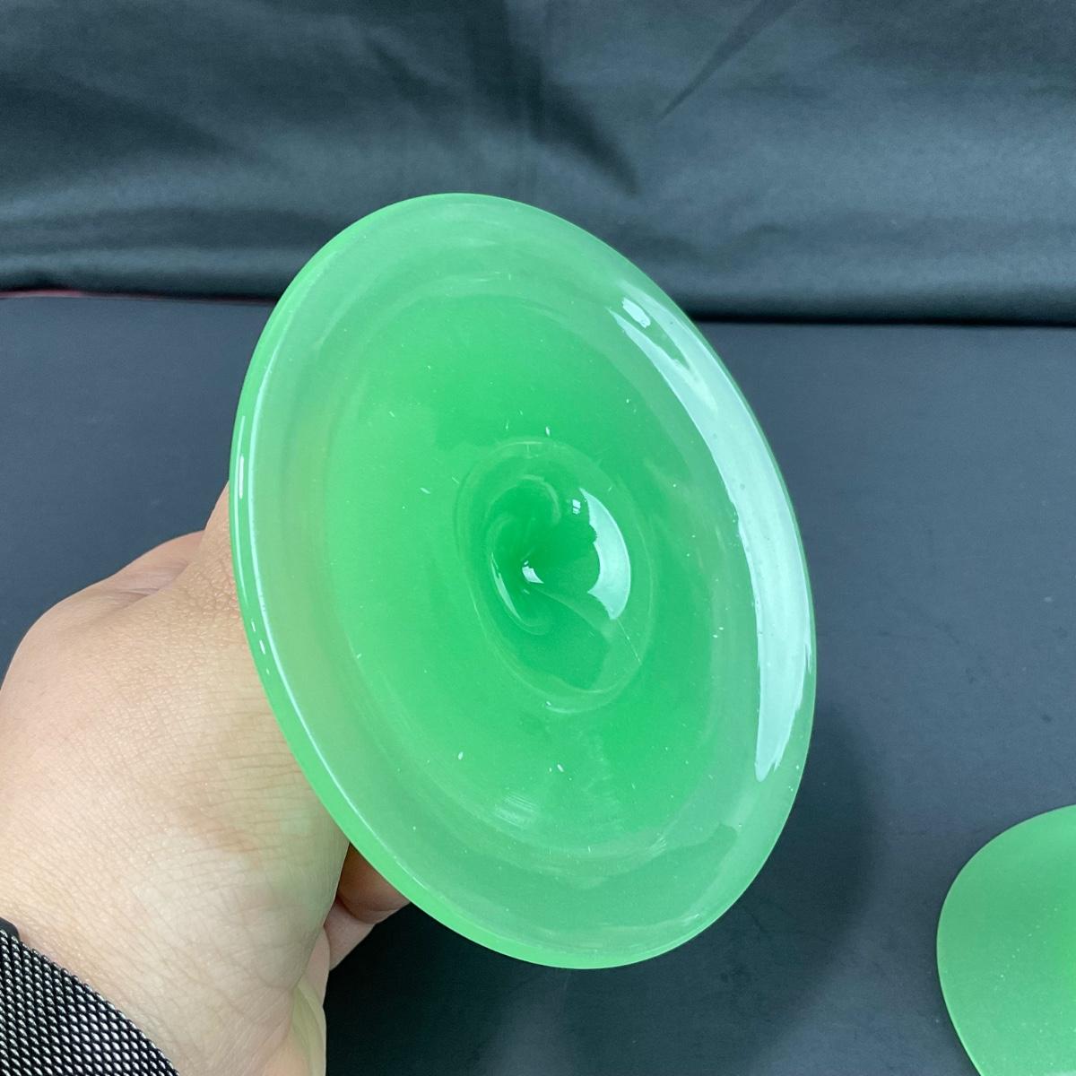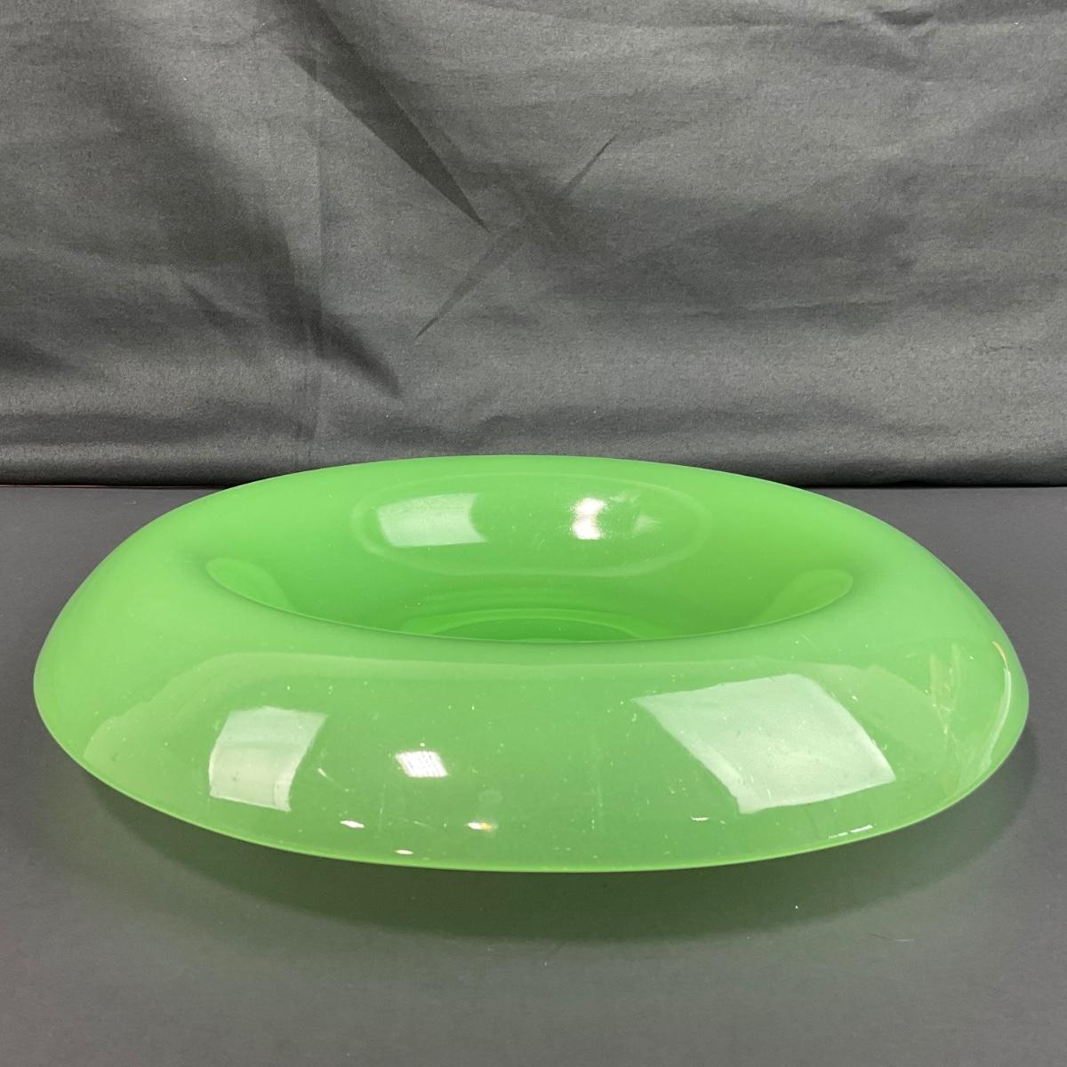 -39- FENTON | Jade Green Rolled Rim Console Bowl & Candle Stick Holders