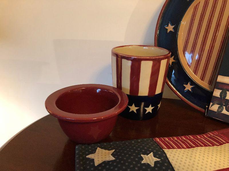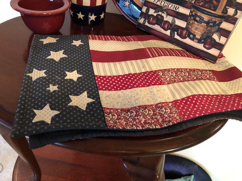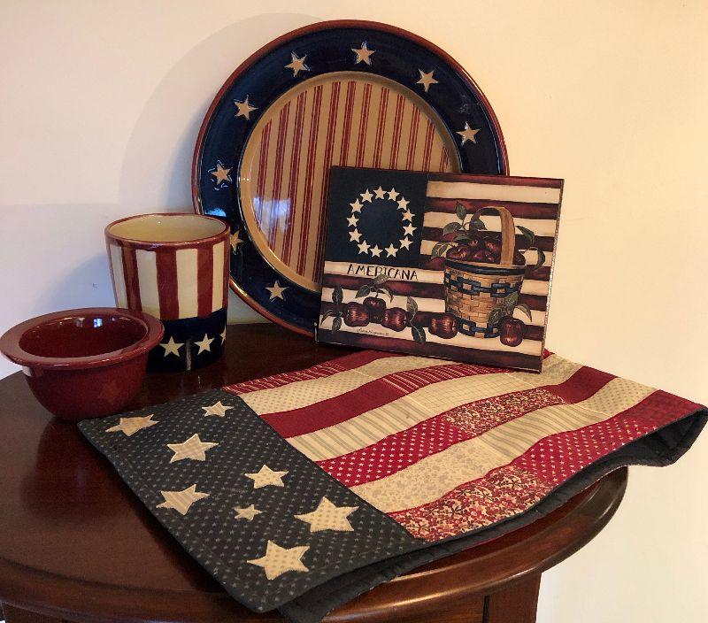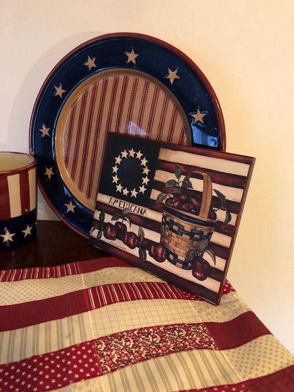 Various USA Themed Décor. Platter (14"), Table Runner, Wall Plaque - All In Good Condition.