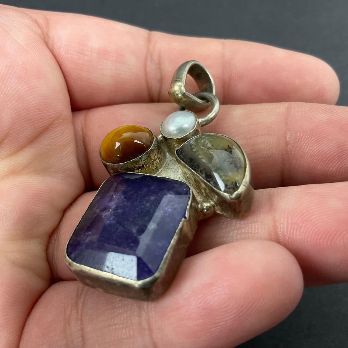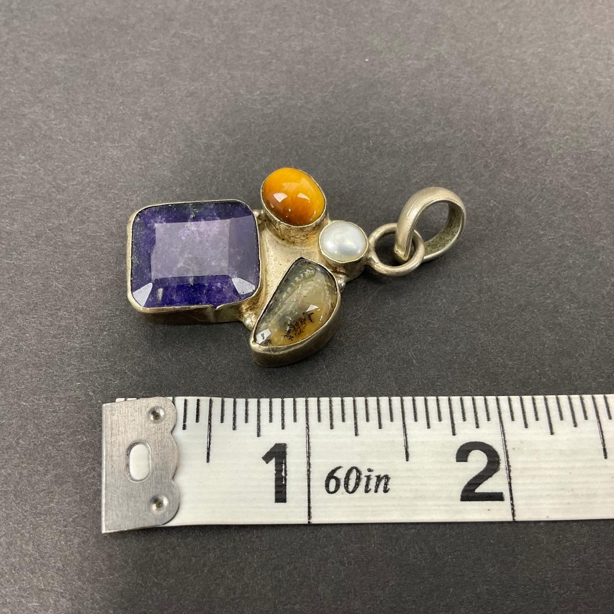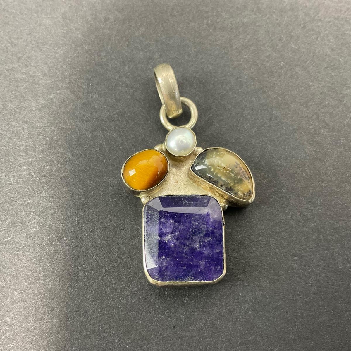 -39- SILVER | 925 Sterling Necklace Pendant & Polished Stones | Marked