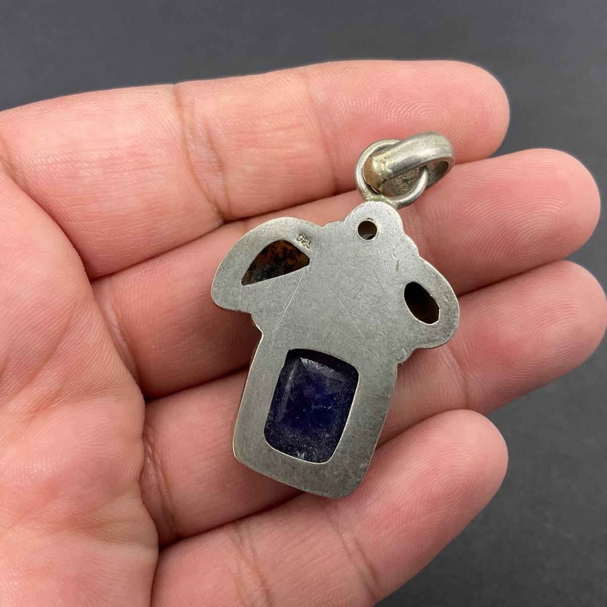 One marked sterling silver 925 necklace pendant with polished stones. Please see photos for details and condition. Any condition statement is given as a courtesy to a client, is an opinion, and should not be treated as a statement of fact. Reference to condition written, oral or within a condition report shall not be regarded as a full account of condition and may not include all defects, alterations, or restorations. Absence of a condition report does not imply a lot is flawless or lacking imperfections or damage. Katherine’s Auction & Appraisal Service shall have no responsibility for any error or omission. Returns shall not be accepted on the basis of condition. ::: Shipping is available on this lot. If you require shipping you must let us know at the close of the auction. We will coordinate with you after the item has been won. Shipping fees will include insurance up to or exceeding the value of all items being mailed. If you have any questions regarding this lot please contact the auctioneer either via this website, by direct email or by phone. PICK UP TIMES and other important information can be found in the TERMS and DESCRIPTION of the auction. Please take a look for pertinent information. Thanks!