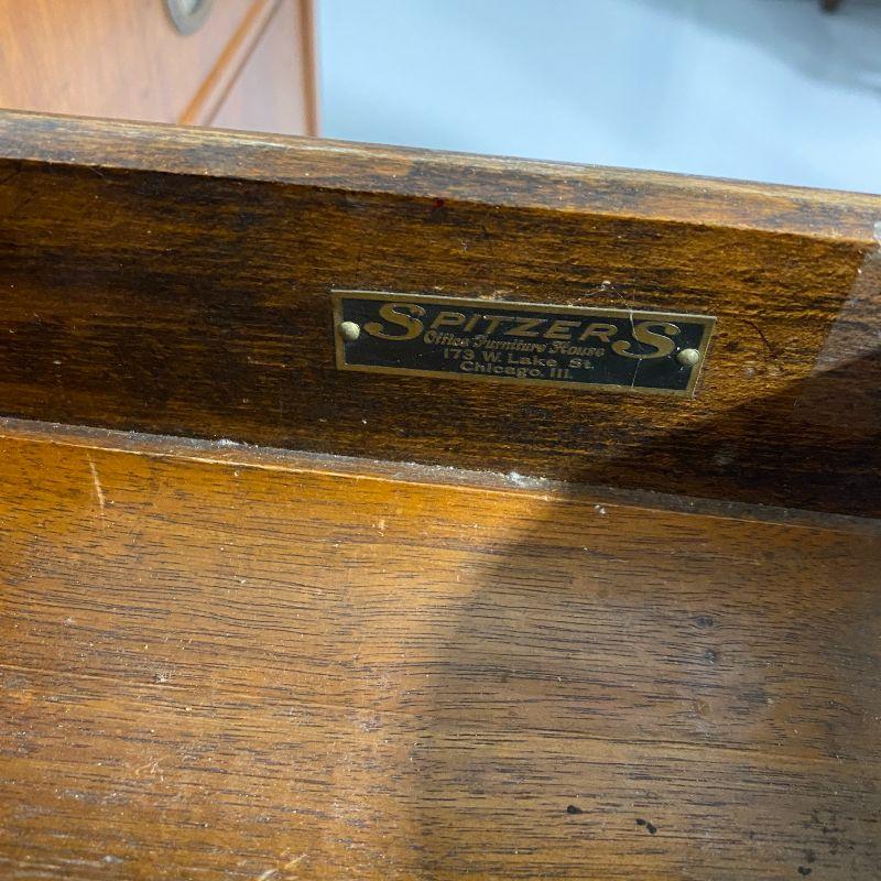 Spitzers of Chicago Oversized Desk, for your consideration. Nicely dove-tailed drawers. Minor issue with veneer on bottom left drawer. Walnut wood throughout. Privacy Panel. Pushing in center drawer locks side drawers, no key. Top does need to be refinished. Measurements: 66" wide / 36" Deep / 30" Tall. ::::All Measurements are approximate and to the best of our knowledge. If you are interested in shipping of an item, we can add that service to your invoice after the close of the auction. Do keep in mind that any oversized items may need to be shipped via freight from Appleton, Wisconsin. We will work with you to get the best price and a $5 per item handling fee will be assessed in addition to the freight fee from the courier. Please contact the auctioneer through this website, by phone or email with any questions.