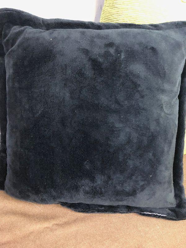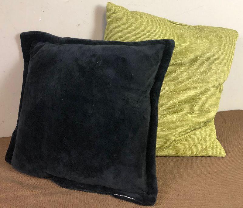 16" Black Velvet-ish and 18" Square Olive Chanel Material - Used and in good Condition.