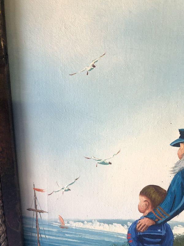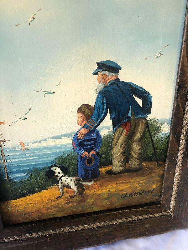 39: Vintage Original Oil- Old Salt with Young Sailer Boy and Dog