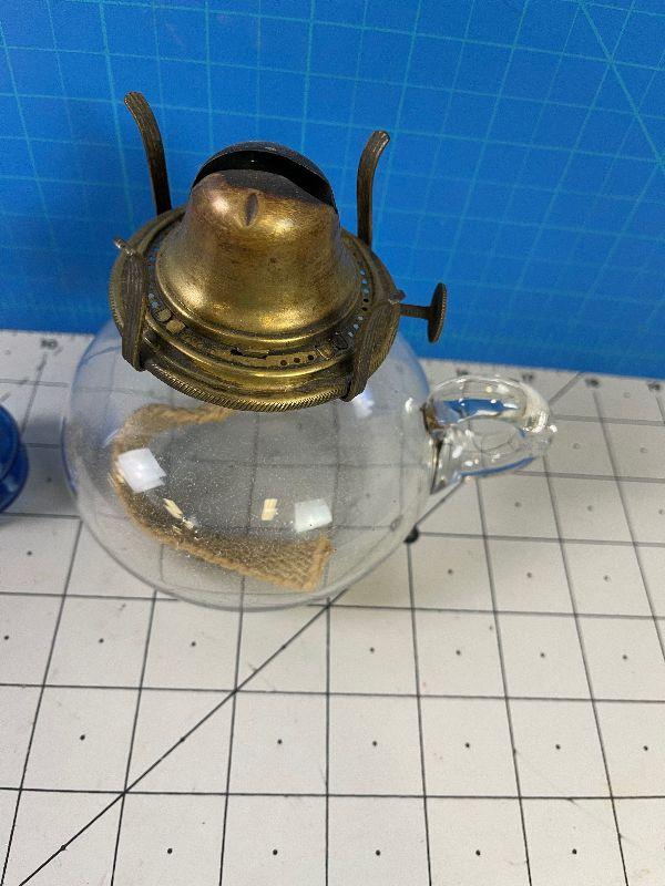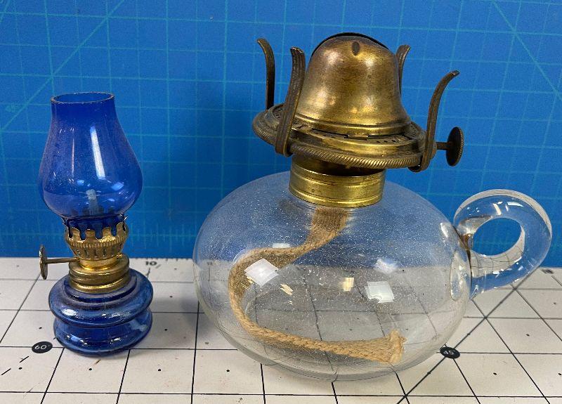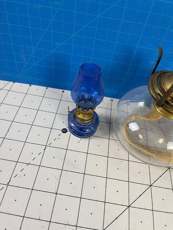 #390 2 Oil Lamps - Little Blue and large Clear