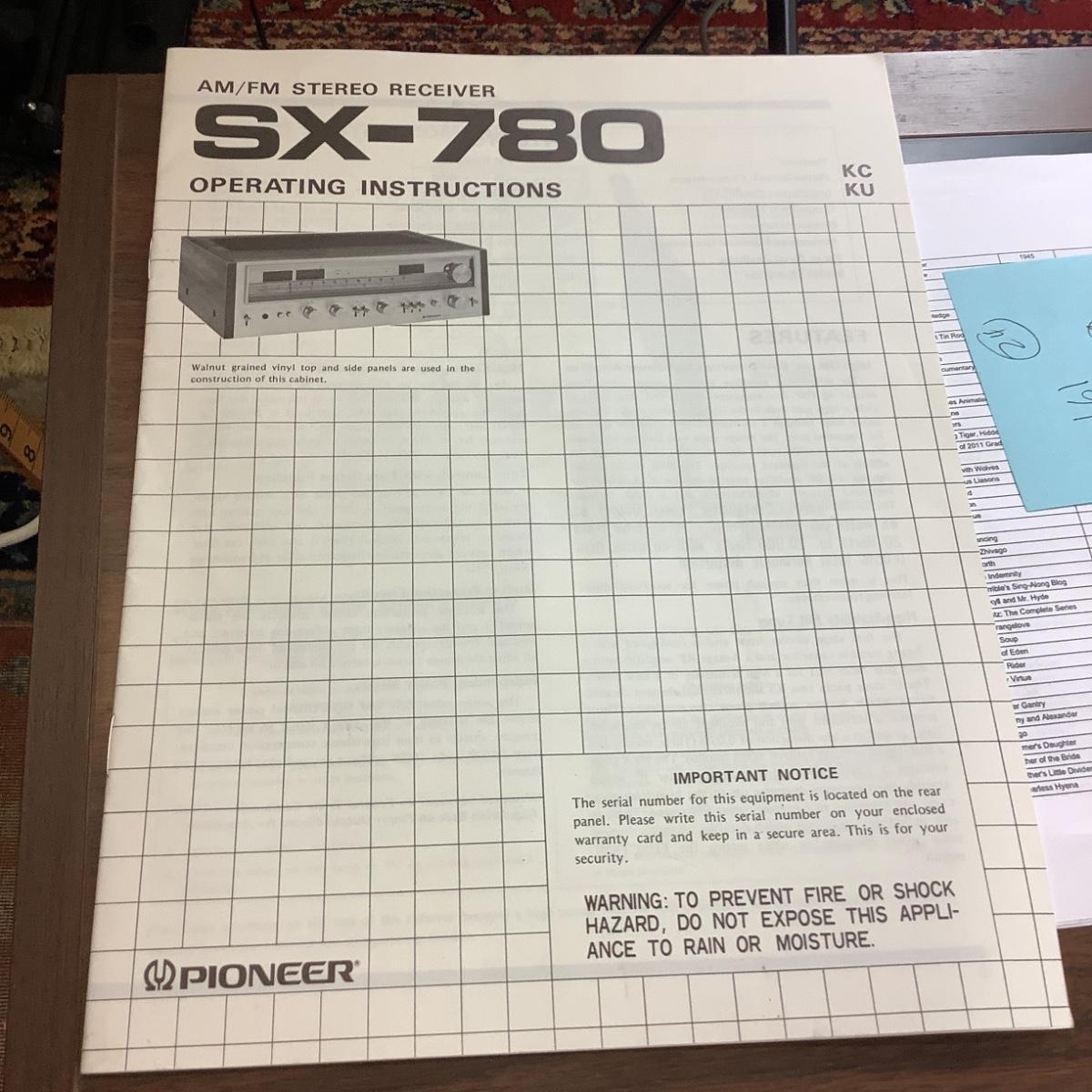 390 Pioneer AM/FM Stereo Receiver SX - 780
