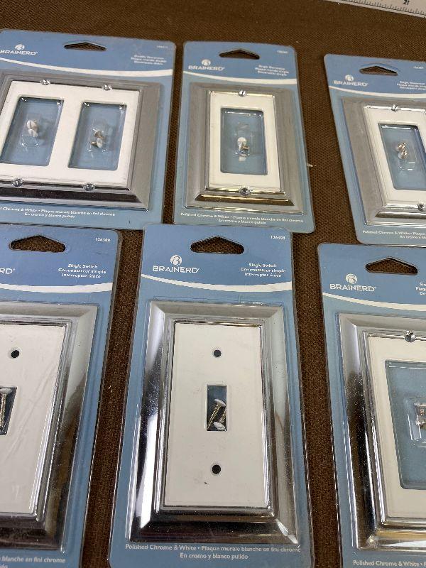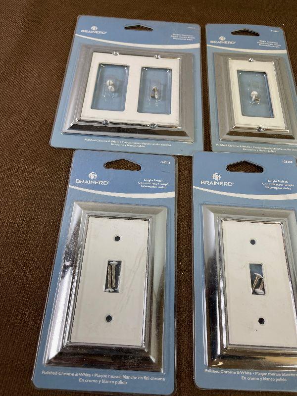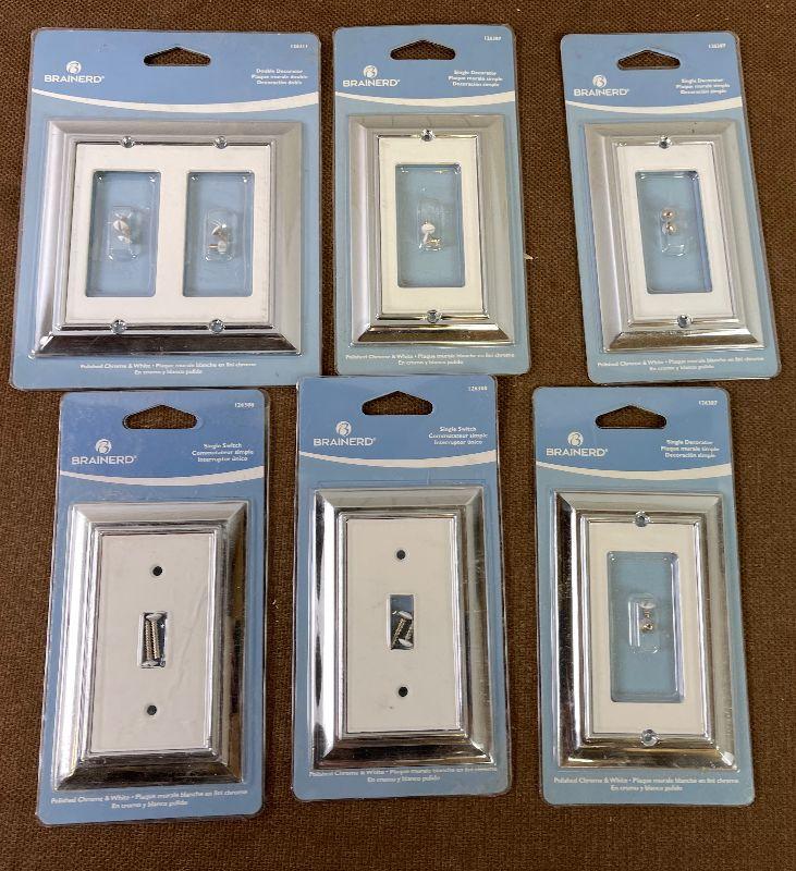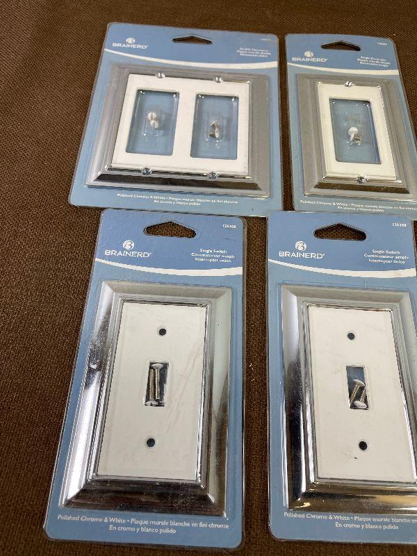 #391 Brainard Chrome and White Switches and Plugs New