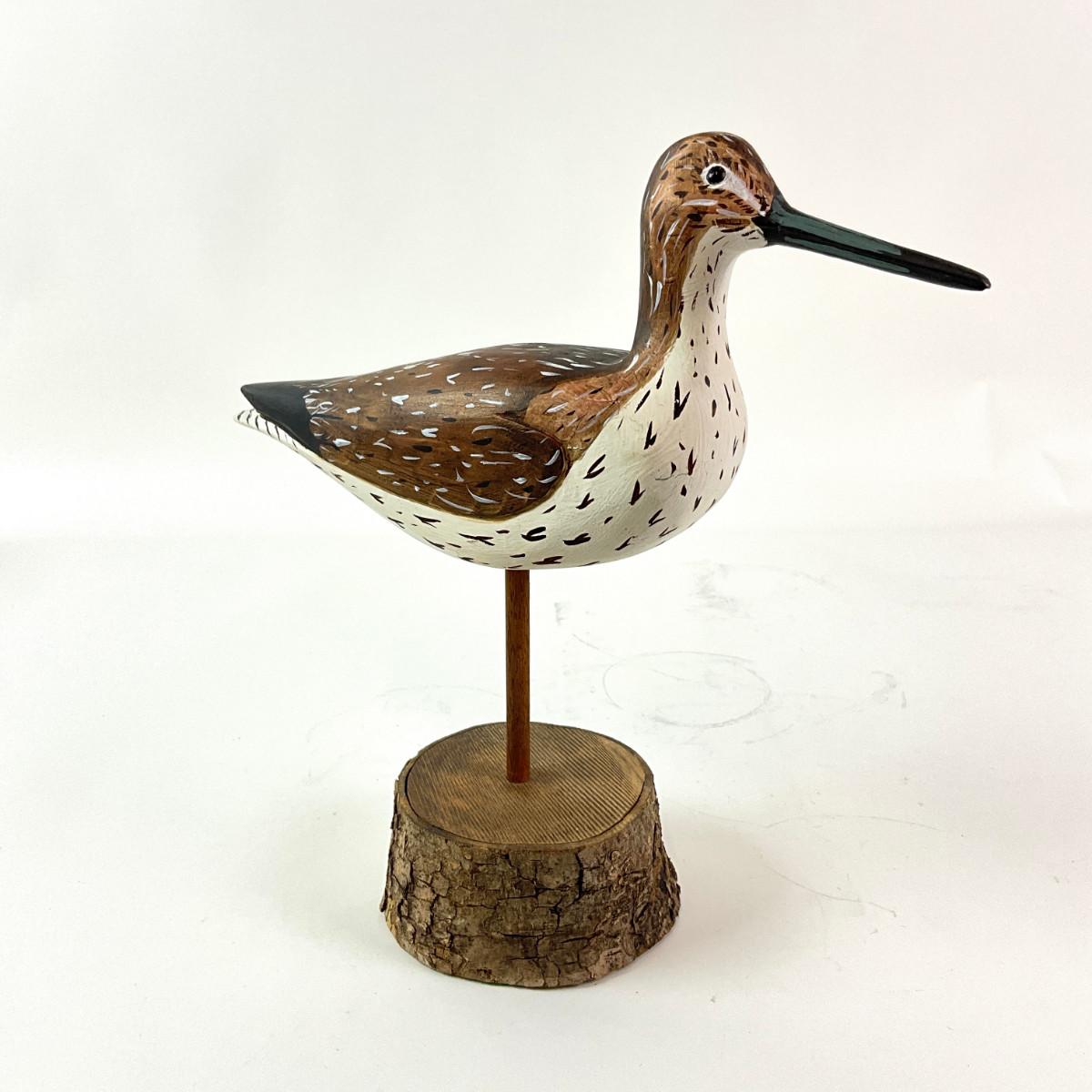 391 Brown/White Sandpiper On Stand Carved Decoy