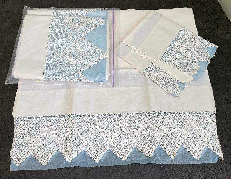 #391B 2 sets, 4 total Pillow Cases with Hand Crocheted edge